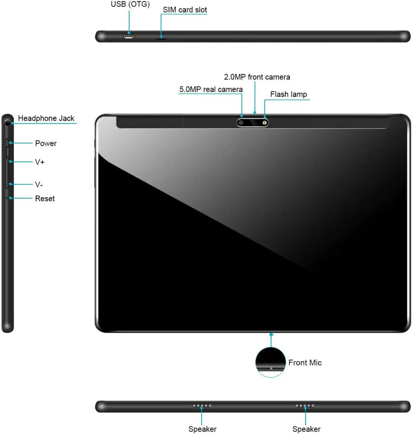 Основные характеристики: 1: 8-ядерный процессор SC9863A, ARM Cortex A7 @ 1,6-2,0 ГГц; 2: 3G байт LPDDR3 3: Встроенный 32G/64G байт NAND флэш-память 4: 10,1 дюйма IPS HD 1280*800 разрешение, стеклянный экран, 5G wifi, сертификация Google