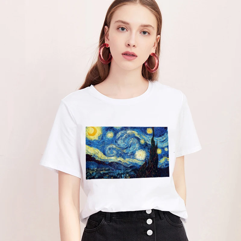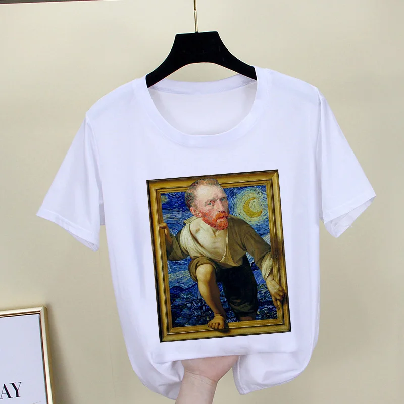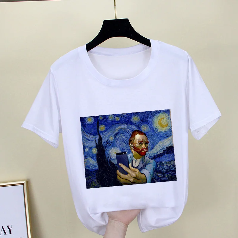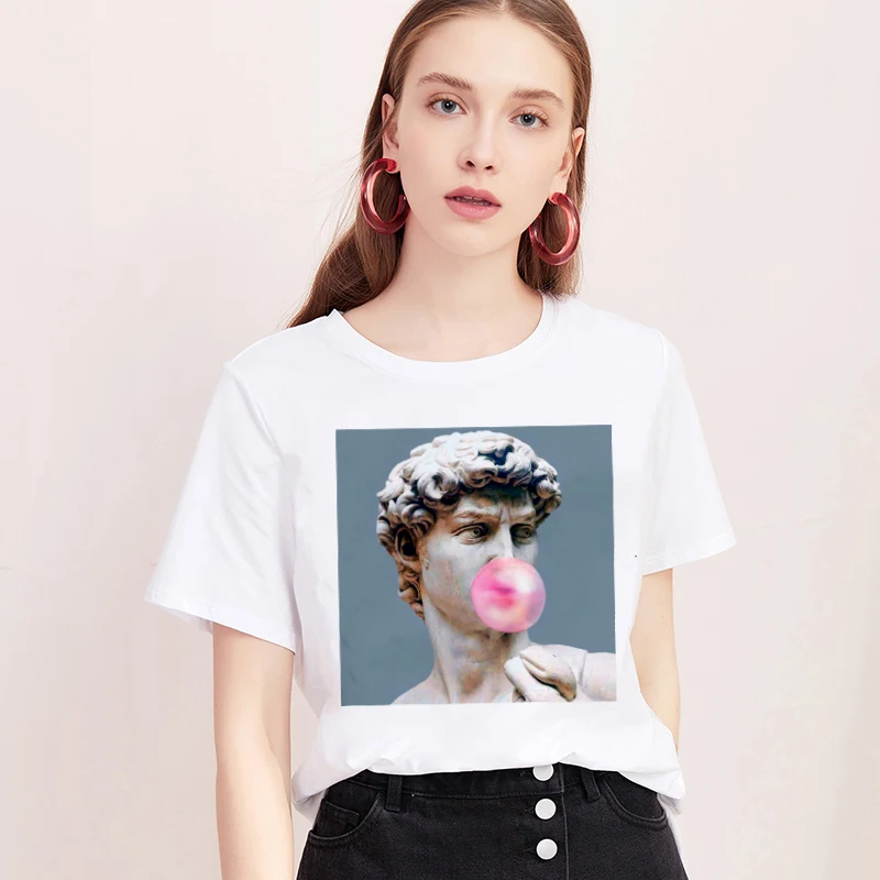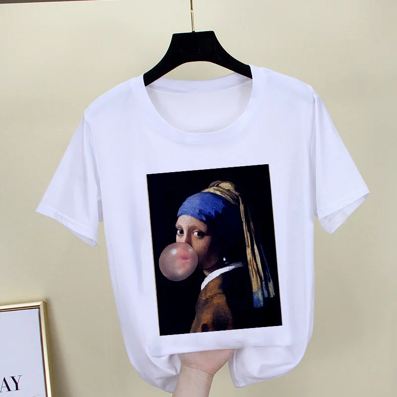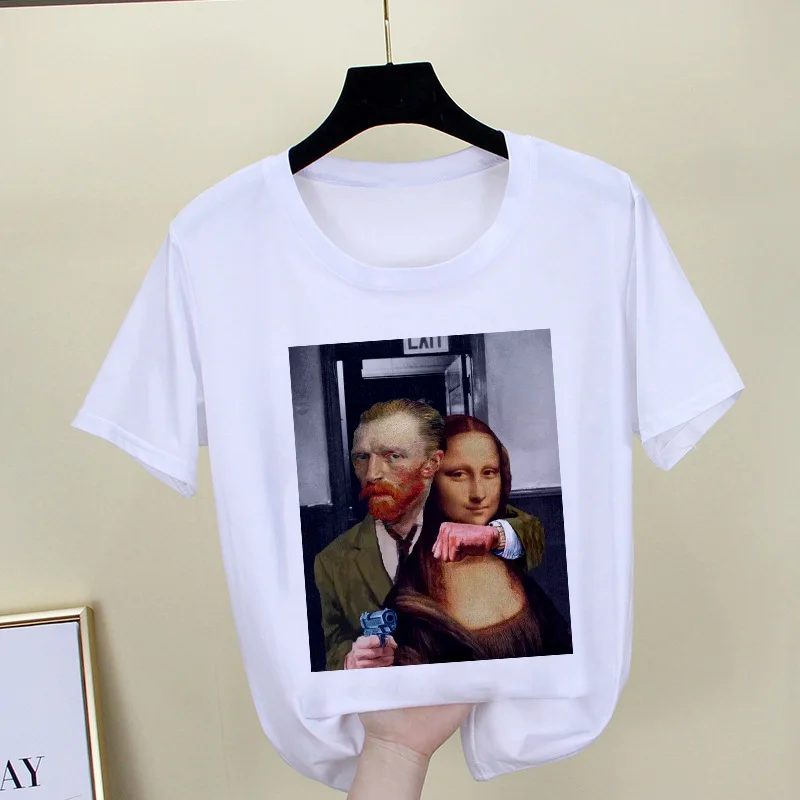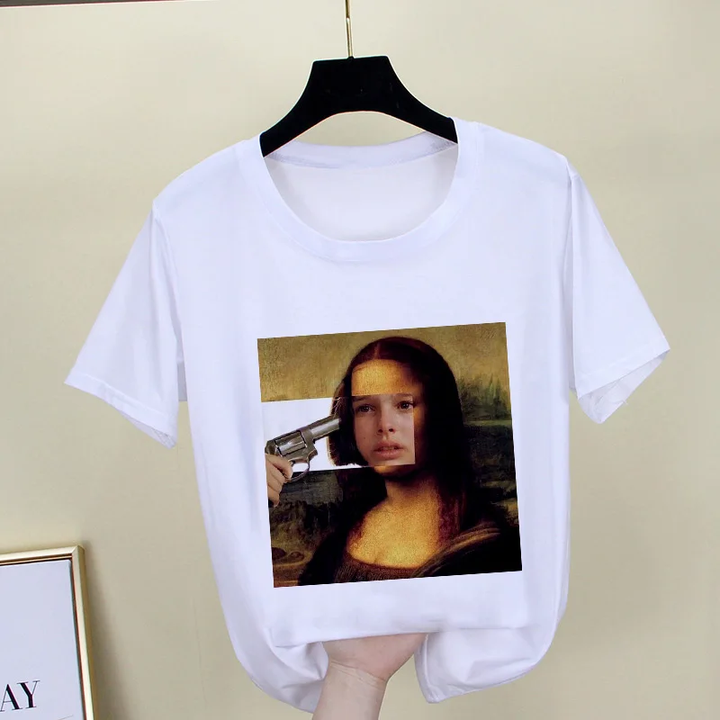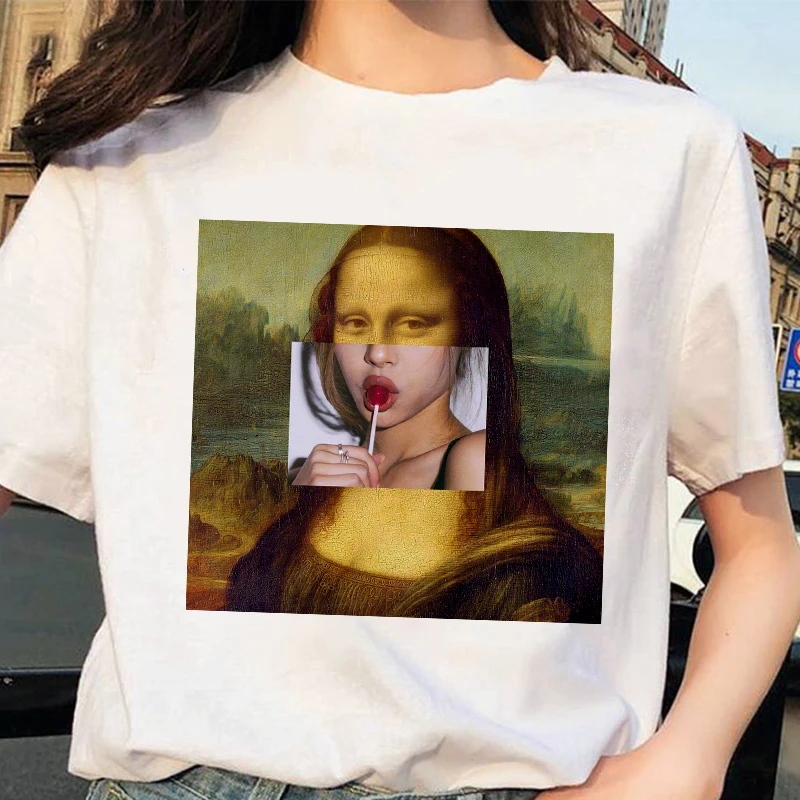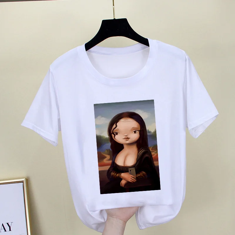 Женская футболка с принтом Мона Лиза, белая футболка с коротким рукавом, лето 2020