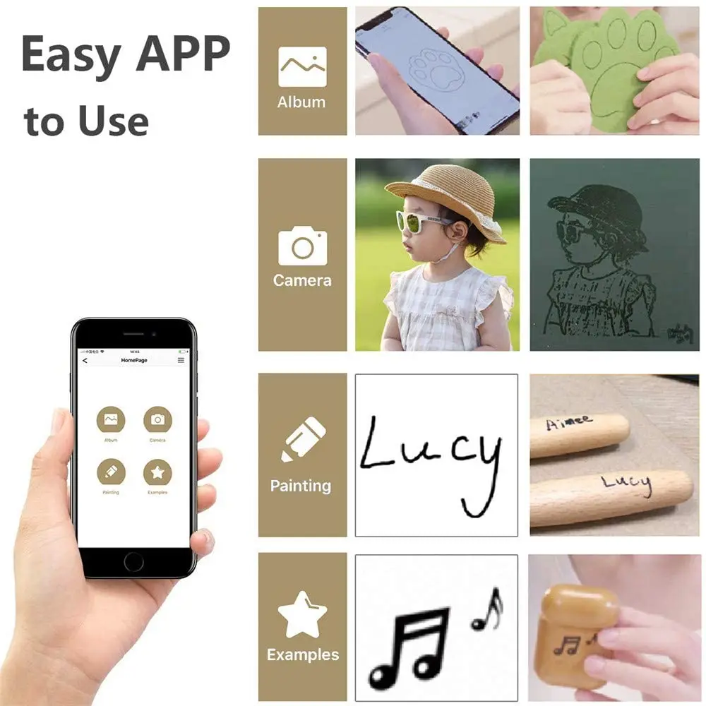 5. Режим работы: используйте мобильный телефон APP, легко управлять, Вы можете DIY любой шаблон, который вы хотите выгравировать;