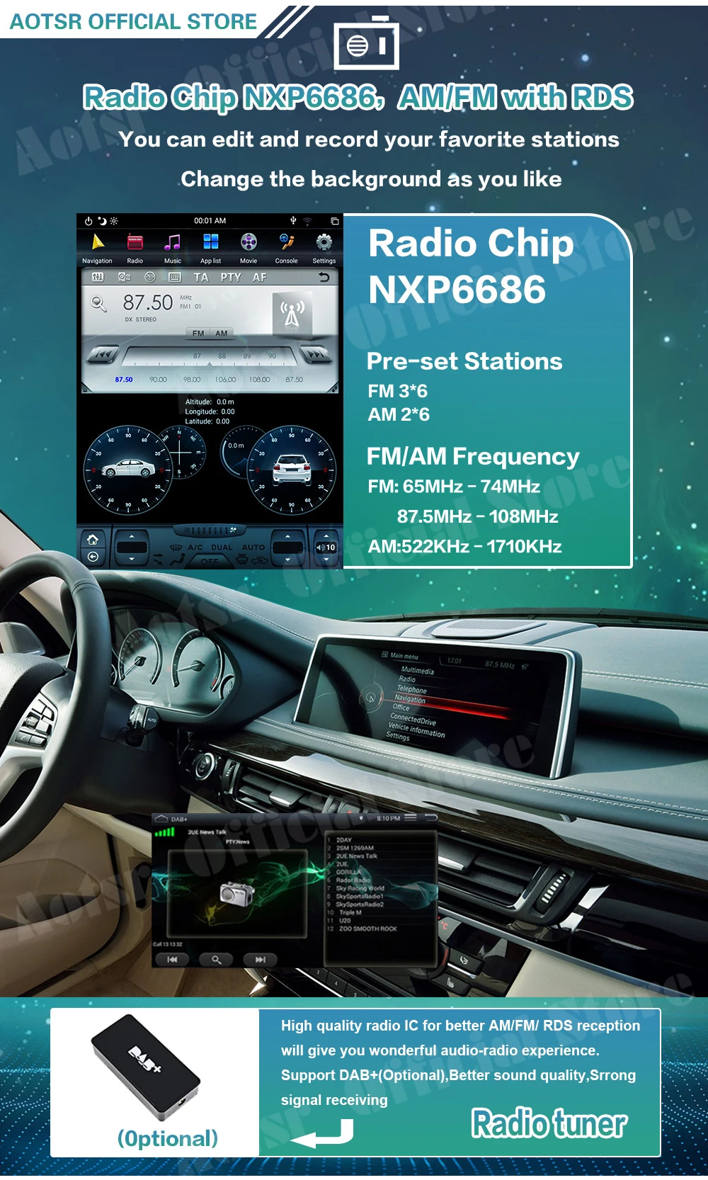 1: разрешение HD 1024*600 IPS-экран2: поддержка голосового управления: английский3: емкостный мультисенсорный экран4:Bluetooth 5,0-Поддержка трехсторонних вызовов5: поддержка HD 1080P + Поддержка музыки без потерь6: встроенная сеть Wi-Fi/3G/4G7: поддержка загрузки приложений Android и Google play store