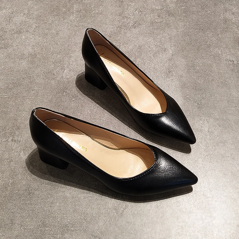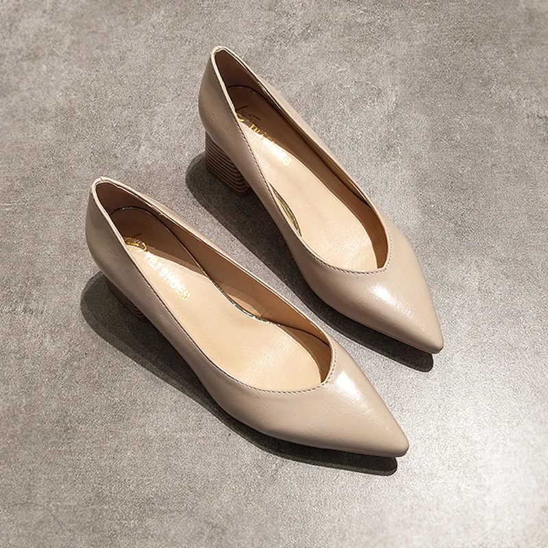 Женские туфли на среднем каблуке 5 см, с острым носком