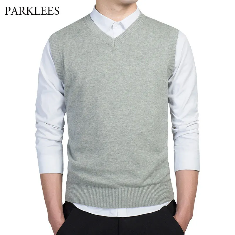 Свитер без рукавов, жилет для мужчин, осень 2020, Классический Мужской Хлопковый пуловер, свитера, жилет, Повседневный, тонкий, v-образный вырез, однотонный, Джерси, Hombre
