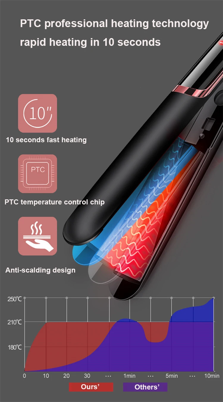 2. Самая большая разница с другими: 1. Это настоящая нагревательная пластина с керамическим покрытием. (Может защитить ваши волосы от повреждений из-за высокой температуры в то же время) 2. Удлиненная окаймляющая пластина позволяет быстрее восстанавливать волосы. (прищепка для густых жестких волос) Теплый совет: волосы каждого человека отличаются, и вы можете свободно выбирать температуру, которая вам подходит. Если это не ясно, вы можете попробовать с самой низкой температуры.