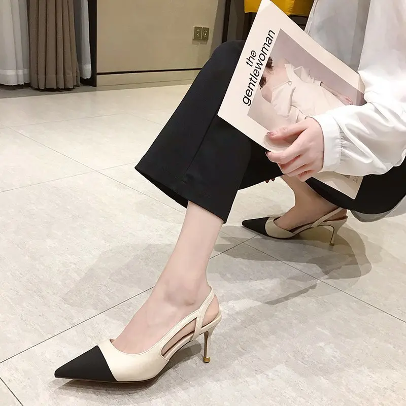 Женские модельные туфли на высоком каблуке, босоножки из флока, Простые Летние туфли с острым носком