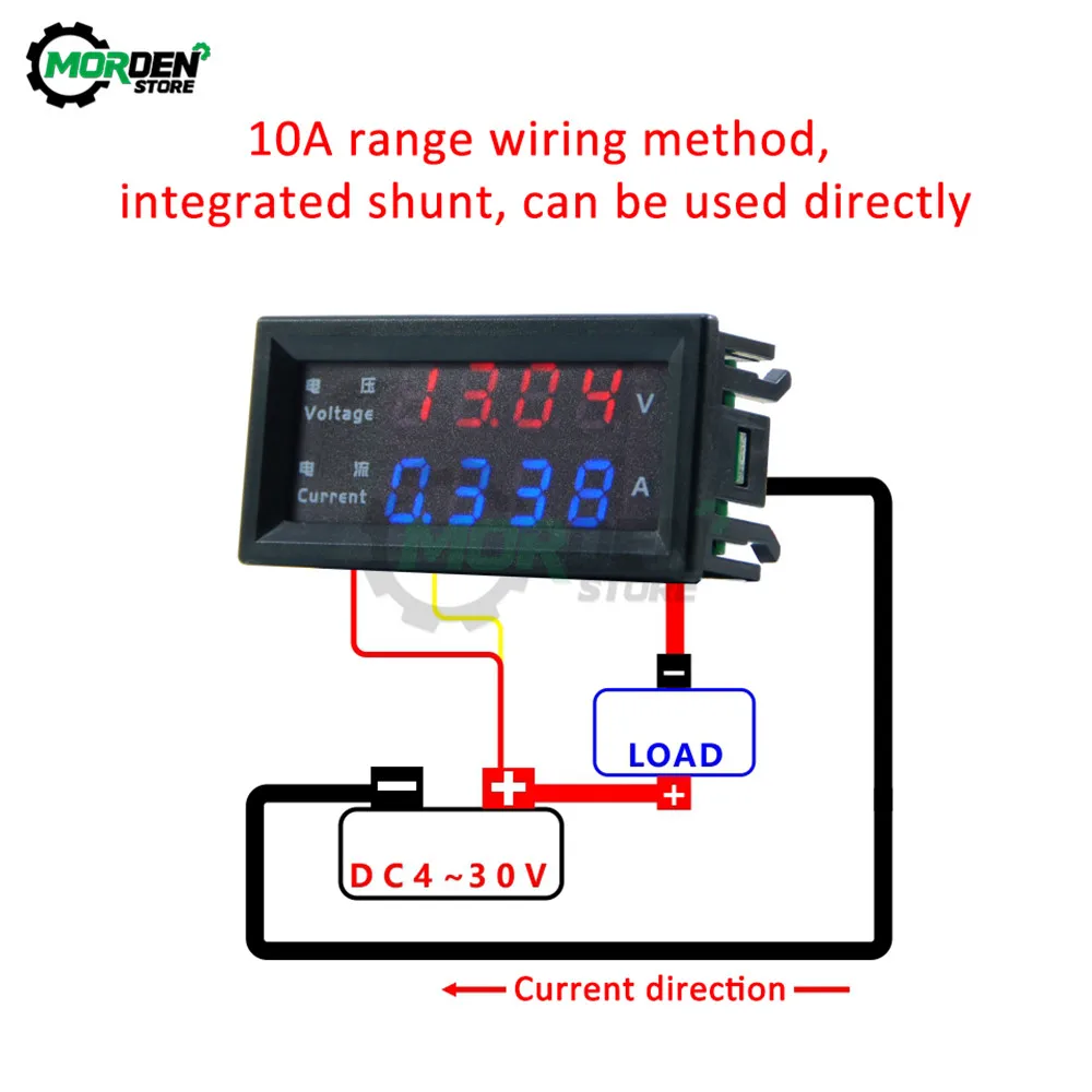 1 шт. цифровой мини Вольтметр Амперметр постоянного тока 100 в 10 А Панель Ампер Вольтметр измеритель тока тестер 0,28 "синий + красный двойной светодиодный дисплей