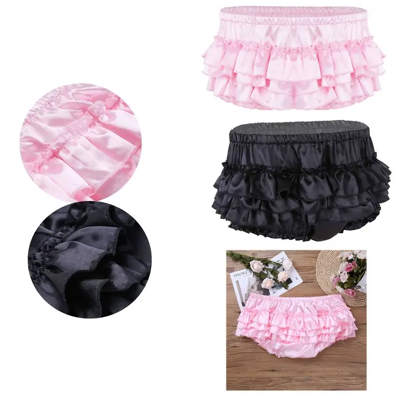 Мужское нижнее белье, мягкие блестящие атласные трусики с оборками, многоуровневые оборки, трусики, нижнее белье, трусики