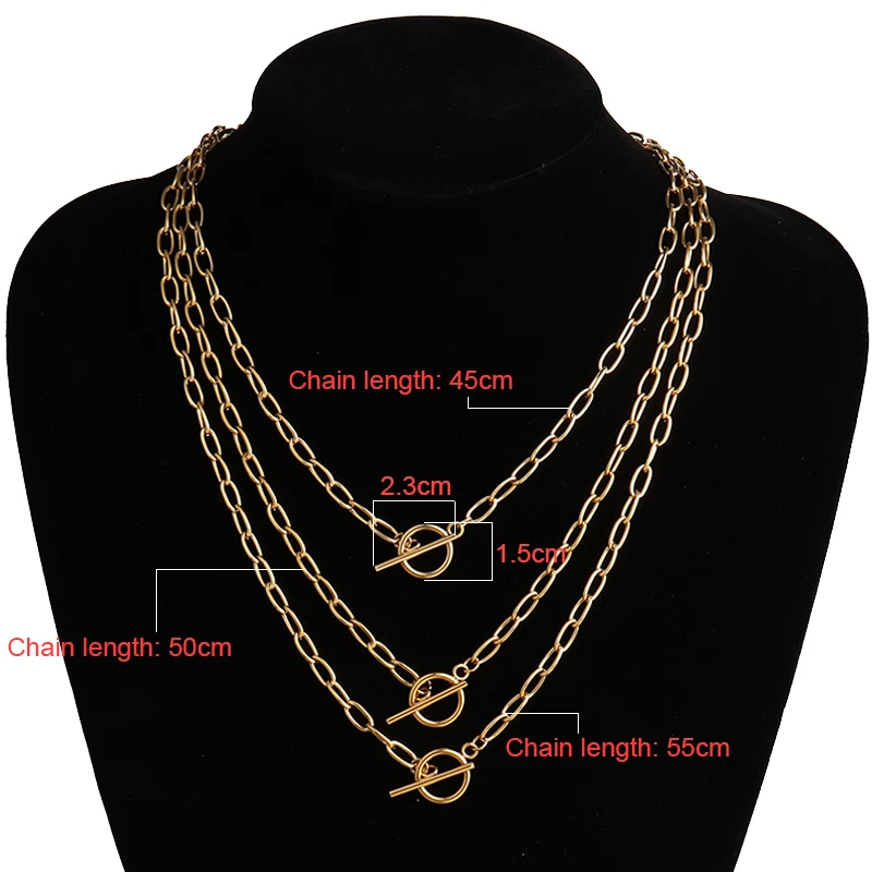 Многослойное ожерелье в стиле панк, звеньевая цепь, золотое, серебр...