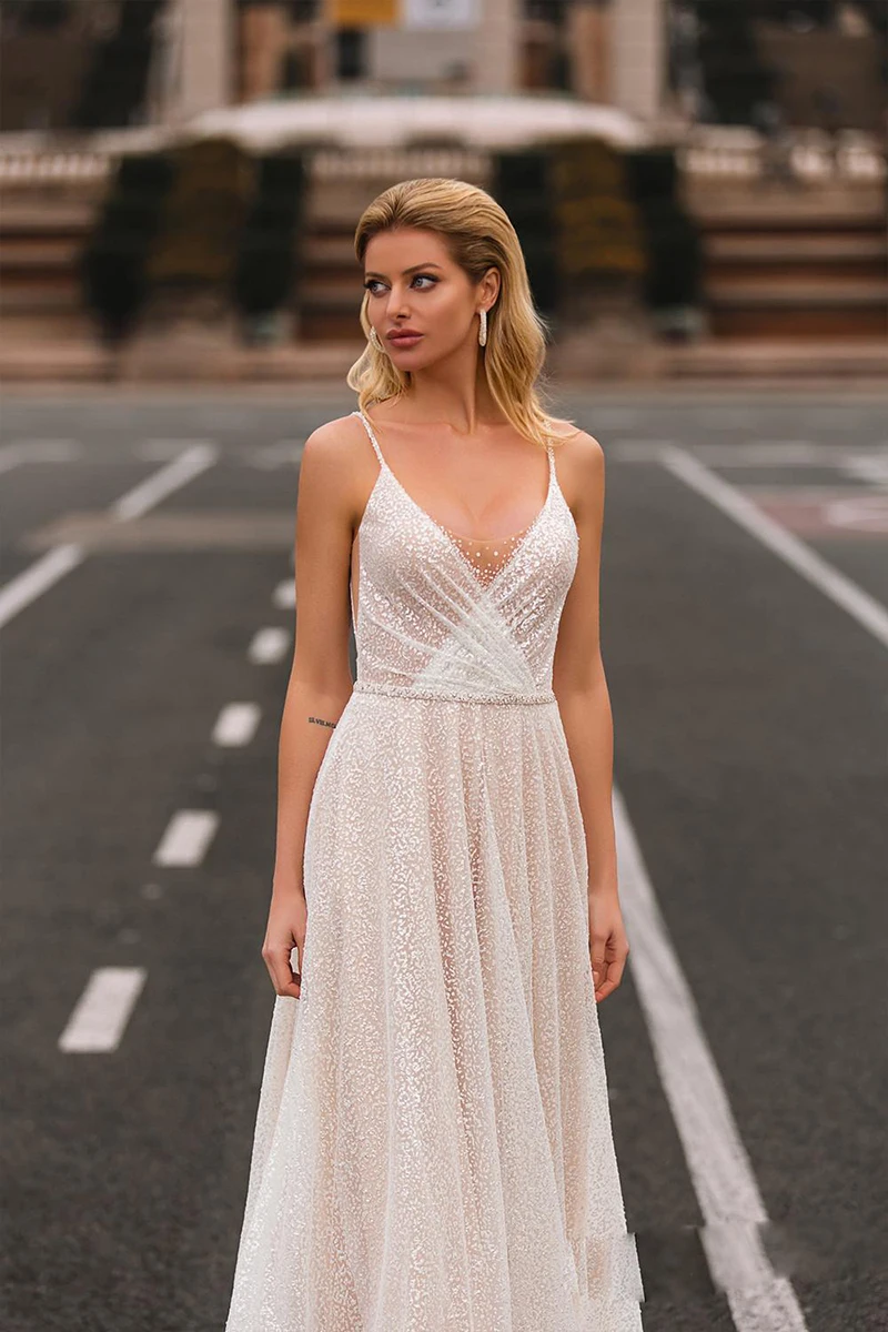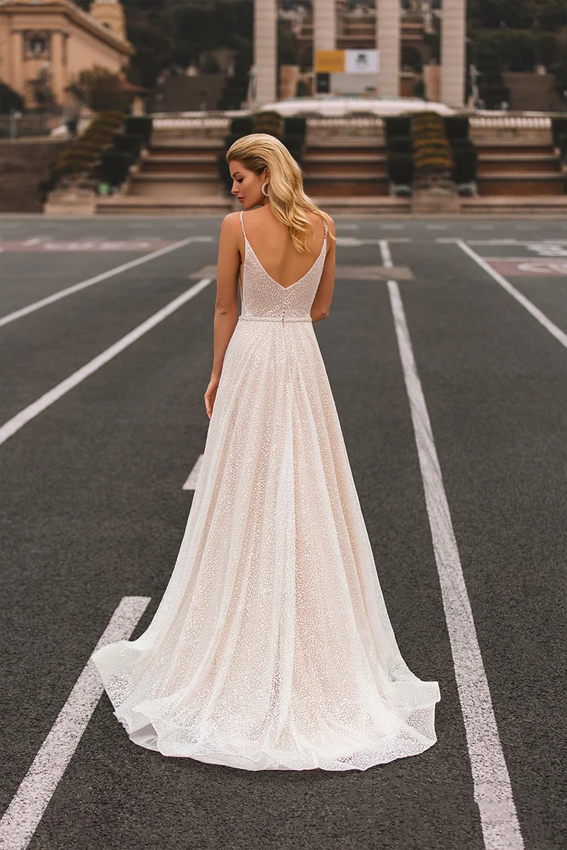 Блестящее Тюлевое свадебное платье Sevintage в стиле бохо, платья для невесты с V-образным вырезом, блестящее строгое свадебное платье, платья для невесты
