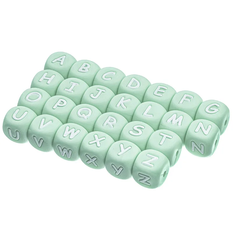 TYRY.HU 10 шт. Мятные силиконовые буквы бусины 12 мм Алфавит детский Прорезыватель бисер без бисфенола А персонализированное имя соска цепочка аксессуары