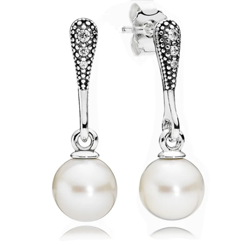 Серьги-подвески женские из серебра 925 пробы с кристаллами и жемчугом