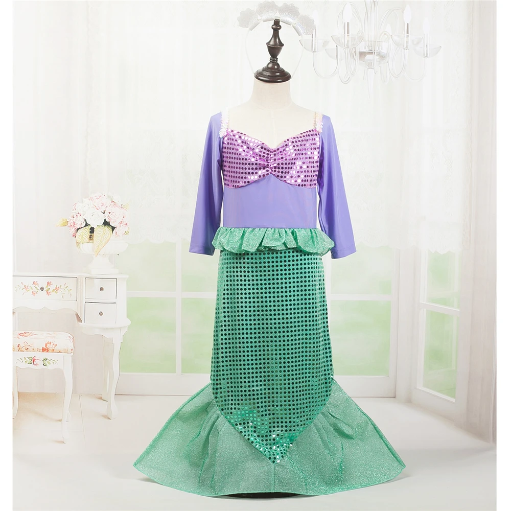 Костюм Русалочки на Хэллоуин, рождественское платье Ариэль для девочек, праздничное платье принцессы, красный парик русалки для детей, сказочное платье