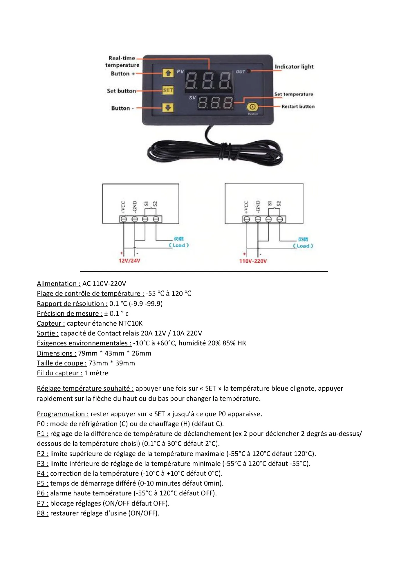 Всё как в описании и на фото . Трек отслеживался .Спасибо продавцу .Посылка до Иркутска дошла за13 дней. Кнопка "Restart" это вкл/выкл устройства, длительным нажатием. "SET" - кратковременным нажатием изменяется установка температуры (кнопками вверх/вниз), длительное нажатие - вход в меню. ( Р 0 ) это выбор режима "Н" - нагрев , "C" – охлаждение . ( Р 1 ) гистерезис (0.1 - 30 град). ( Р 2 ) максимальная температура. ( Р 3 ) минимальная температура . ( Р 4 ) калибровка датчика температуры . ( Р 5 ) задержка включения терморегулятора . ( Р 6 ) сигнализация , при срабатывании мигает дисплей . ( Р 7 ) блокировка кнопок настройки . ( Р8 ) сброс к заводским настройкам . При выключении питания установка температуры сохраняется. Инфракрасный плёночный тёплый пол из Кореи подключу и буду контролировать нагрев двух фляг с брагой.