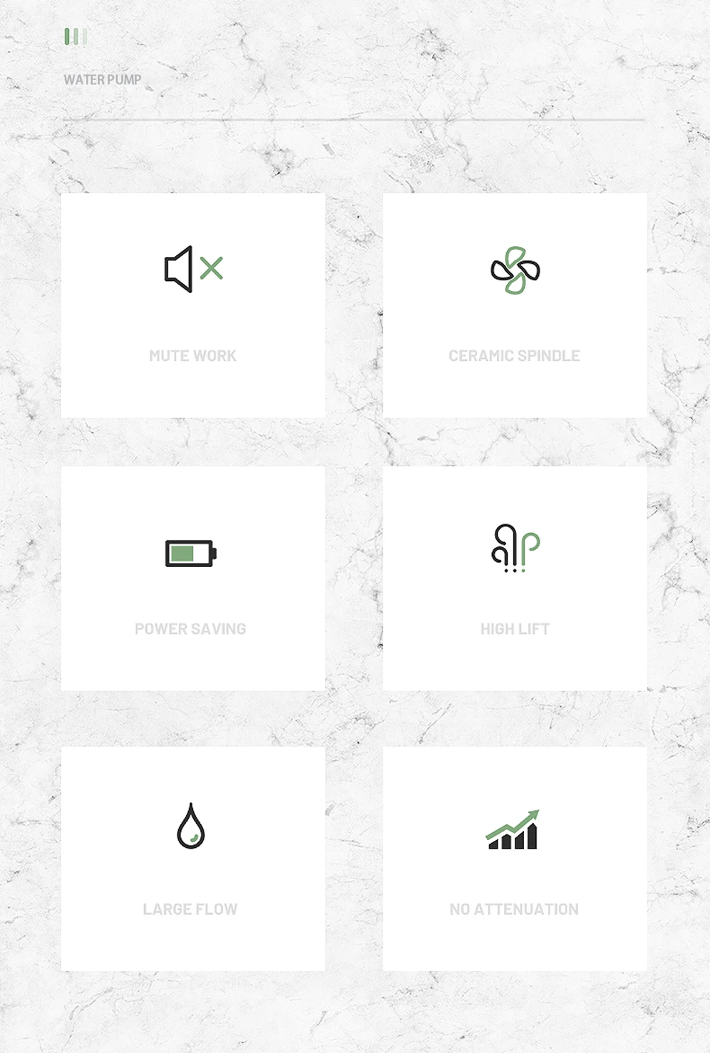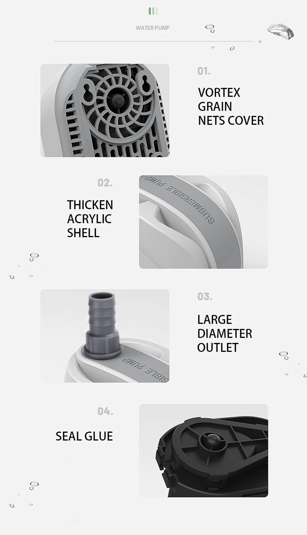 Область применения: аквариумные рыбные резервуары, садовые фонтаны, струящиеся водные поделки, вентиляторы с водяным охлаждением, механическое оборудование и другие области.