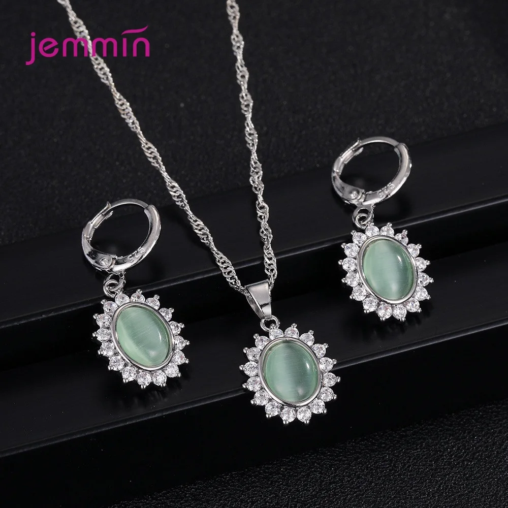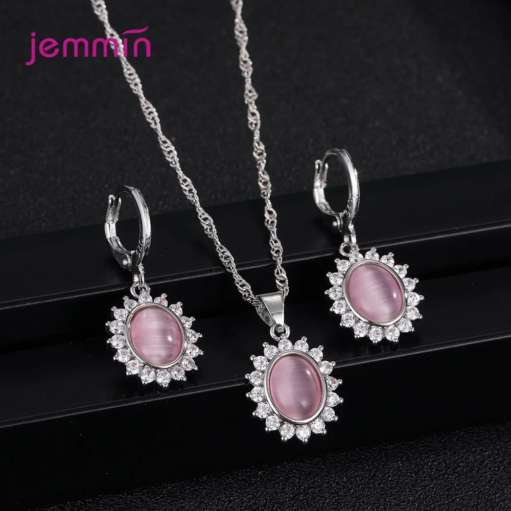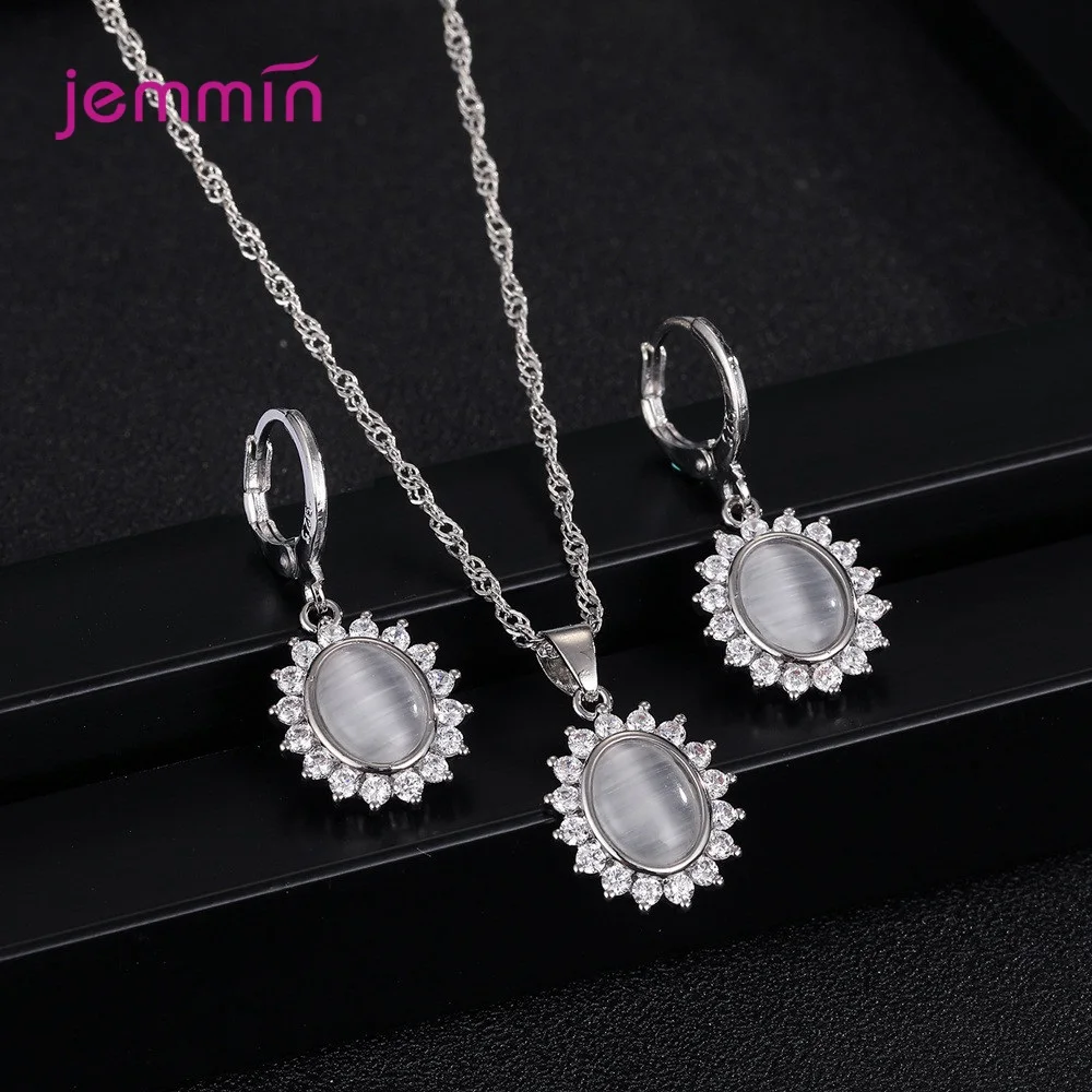 Элегантный серебряный 925 Ювелирный Набор Овальный цветок циркон кулон серьги ожерелье для женщин годовщина шеи орнамент женский опт