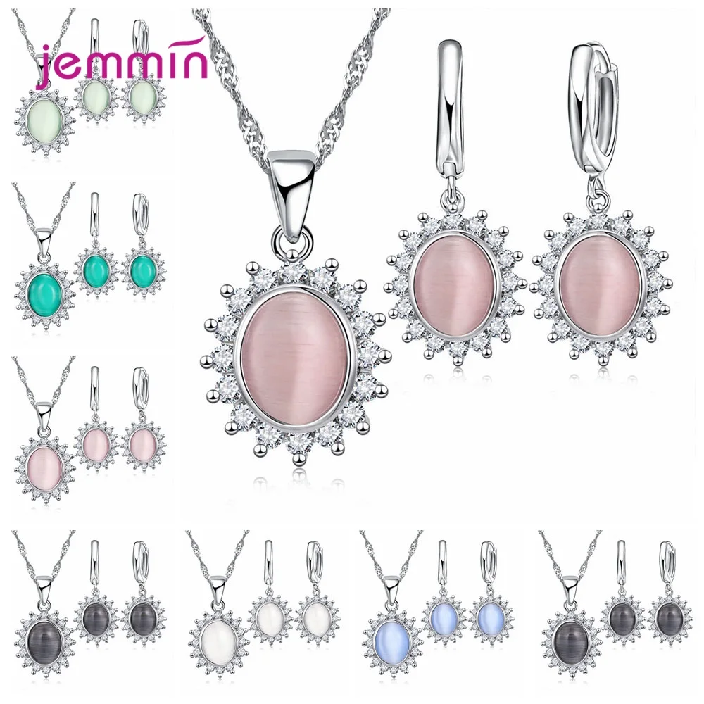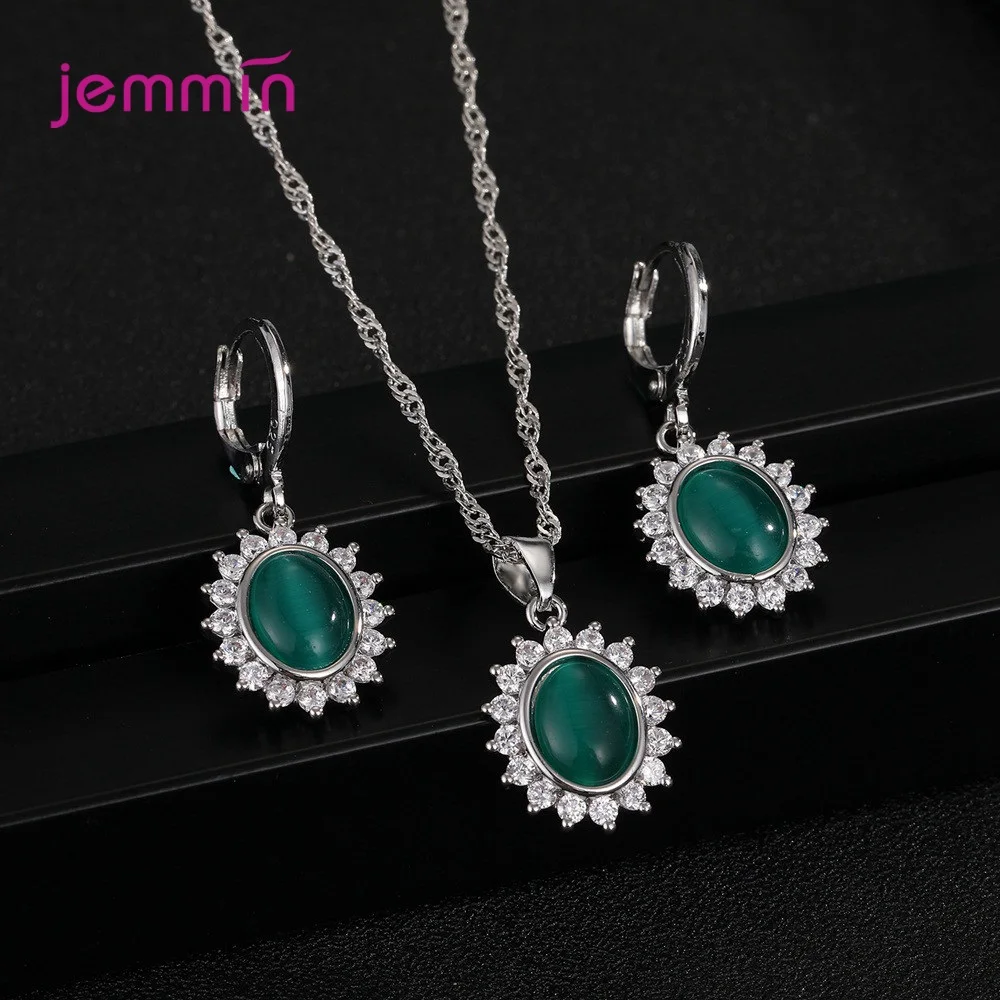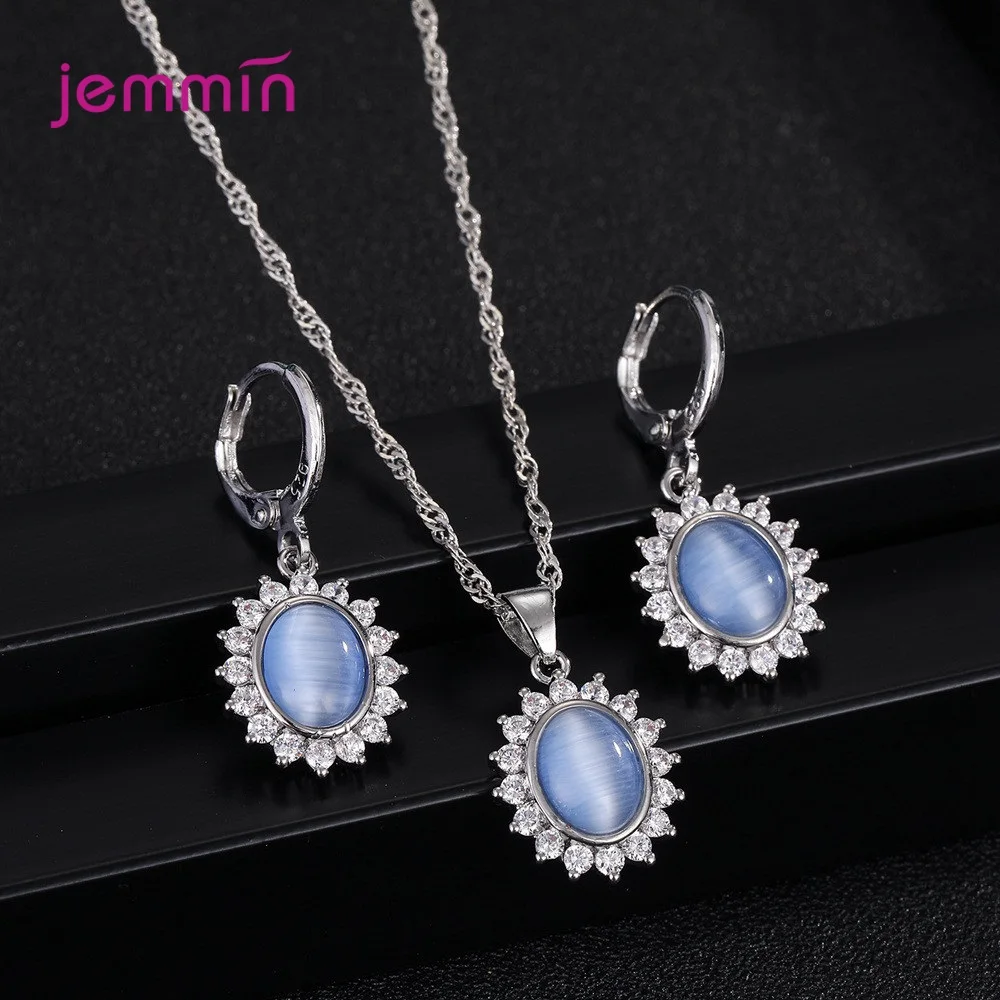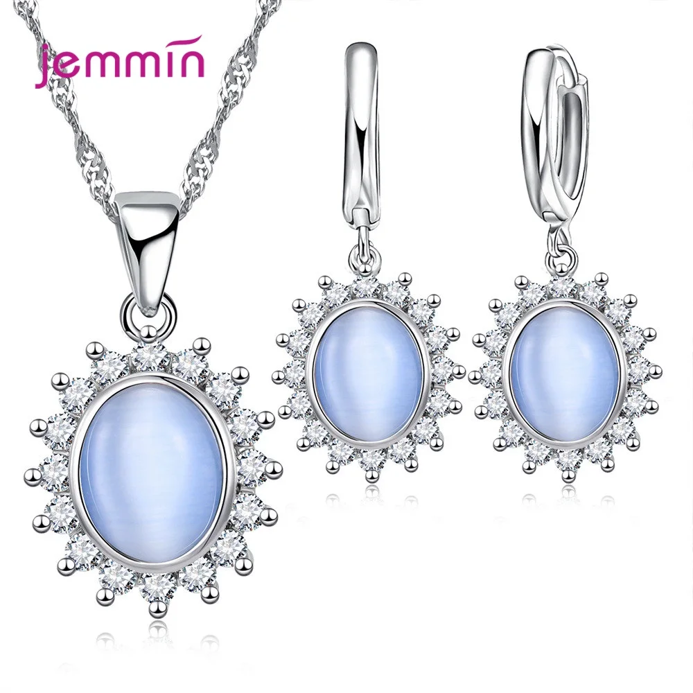 Элегантный серебряный 925 Ювелирный Набор Овальный цветок циркон кулон серьги ожерелье для женщин годовщина шеи орнамент женский опт