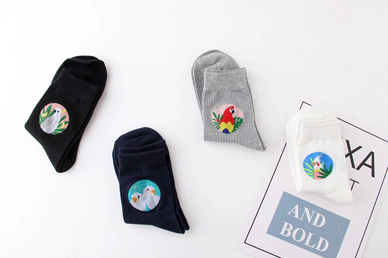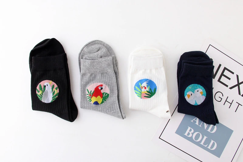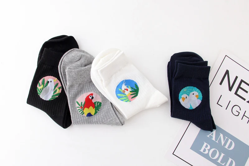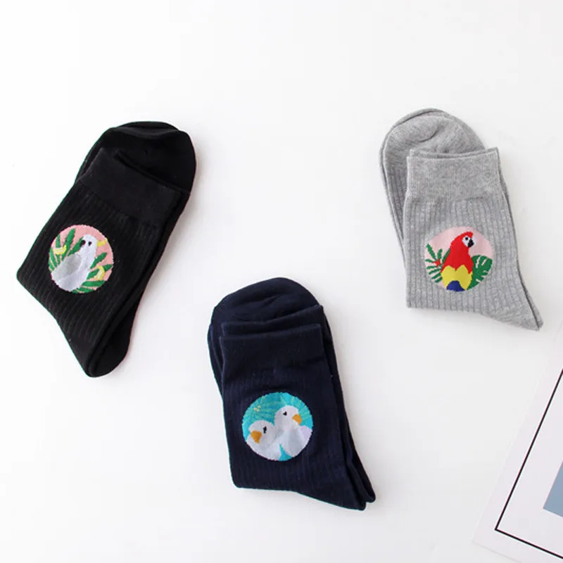 Женские Жаккардовые носки WPLOIKJD, милые жаккардовые носки в японском стиле с изображением птиц, животных, творческие Носки в стиле Харадзюку