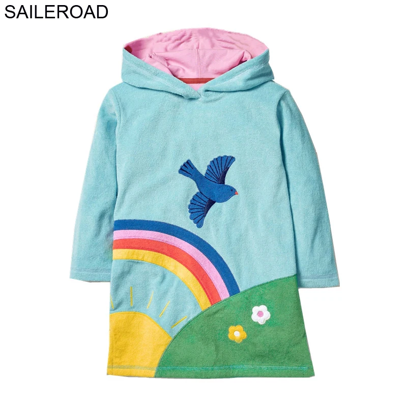 SAILEROAD/платье с капюшоном для девочек; Радужное детское платье с длинными рукавами и рисунком птицы; Одежда с капюшоном; Детские платья с единорогом для девочек