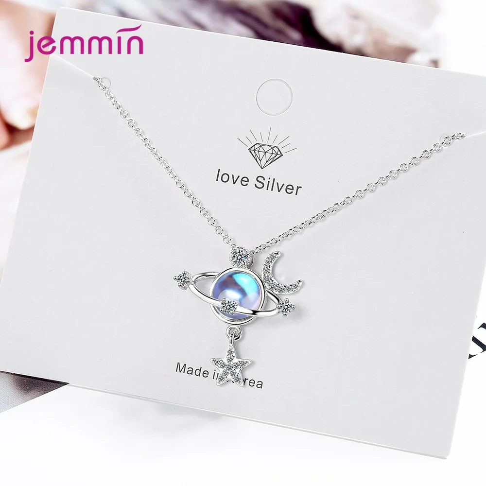 Женское колье из серебра 925 пробы, с подвеской в виде Луны и звезды