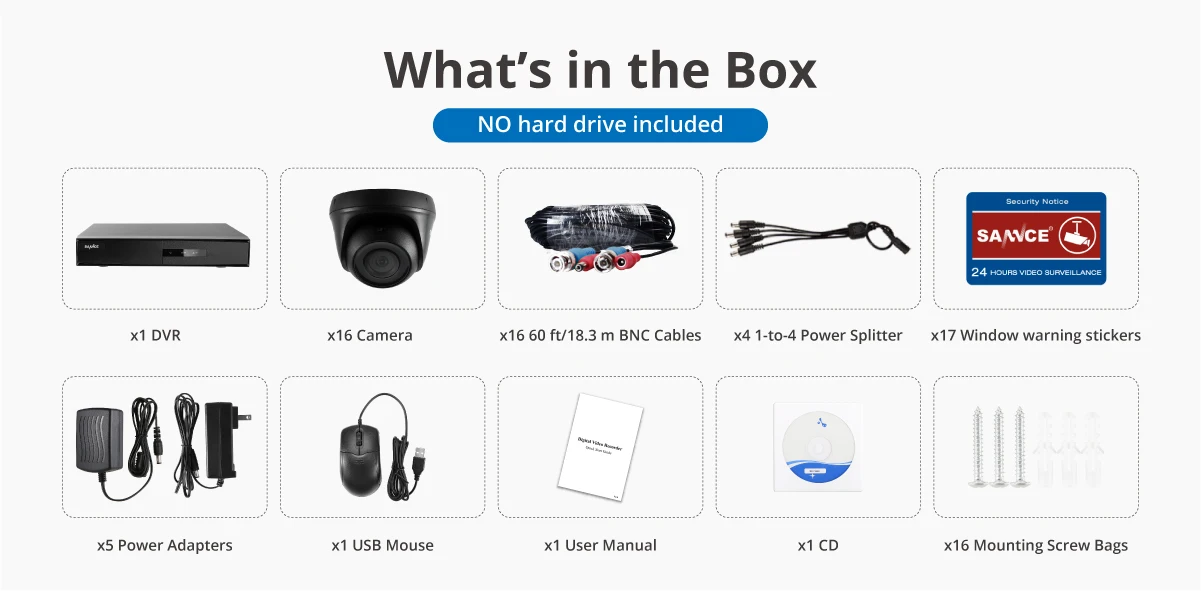 SANNCE 16CH 1080N DVR система видеонаблюдения 16pcs 1080P Купольные Камеры видеонаблюдения IR IP66 водонепроницаемый комплект видеонаблюдения
