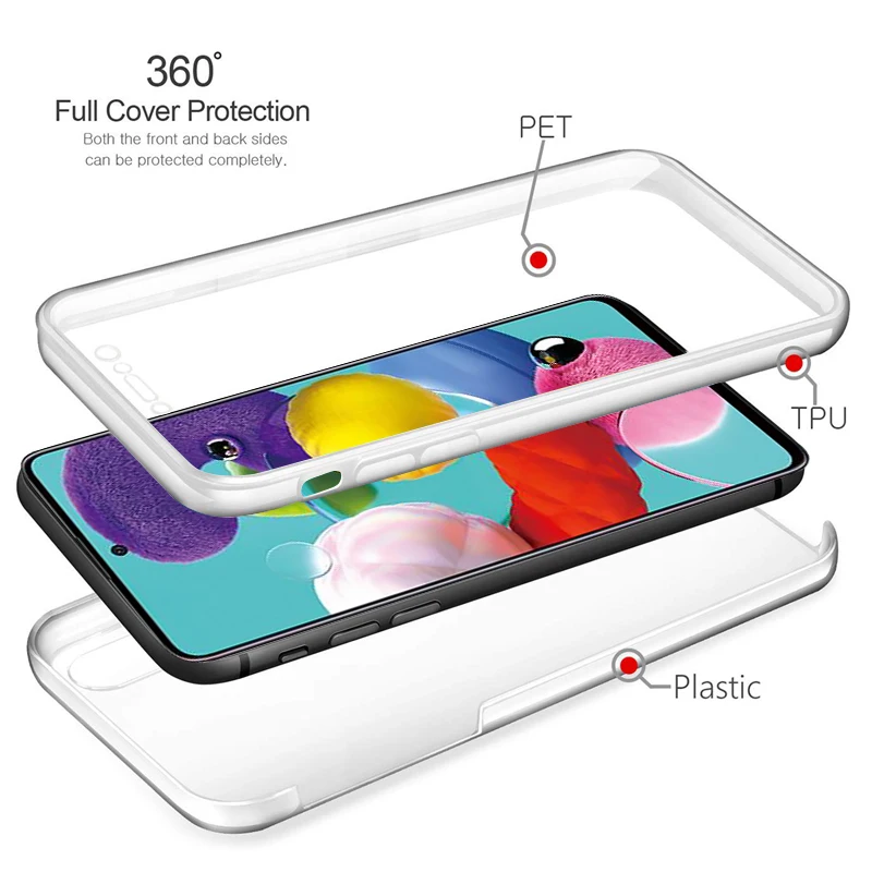 360 полный защитный чехол для Samsung A51 A71 A52 A72 A50 A70 S21 S20 FE Note20 Ultra S10 Plus прозрачный мягкий двойной силиконовый чехол