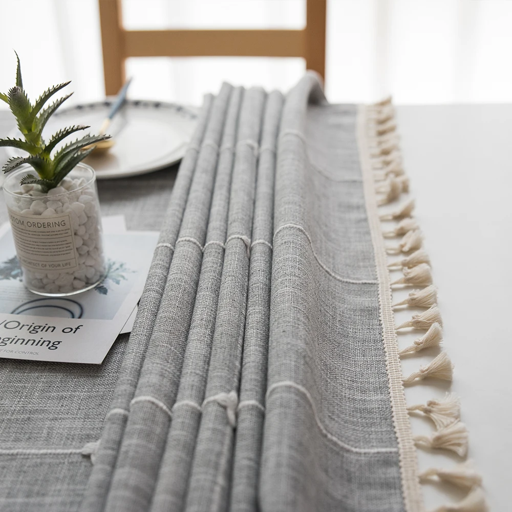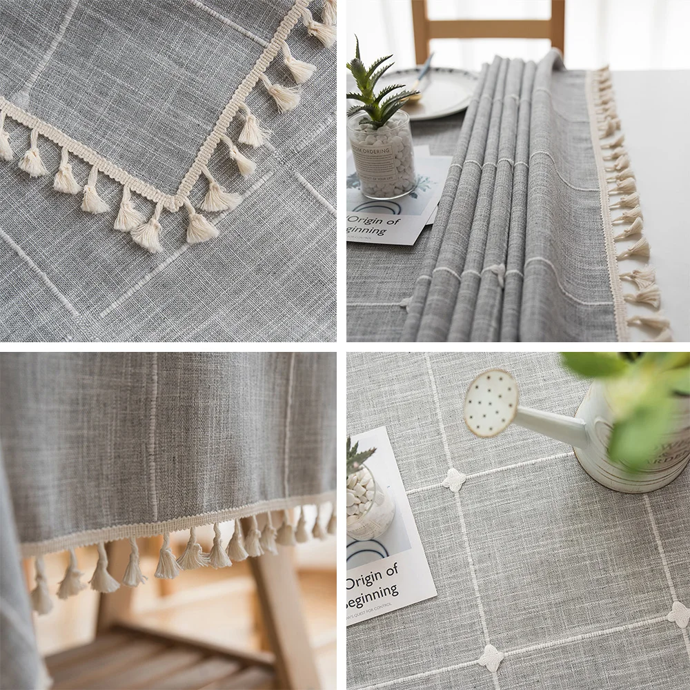 Декоративная льняная скатерть с вышивкой и кисточками, водонепроницаемая маслостойкая прямоугольная скатерть для свадебного обеденного стола, скатерть для чайного стола