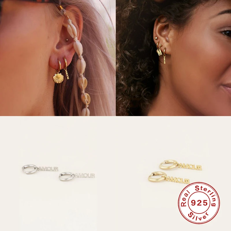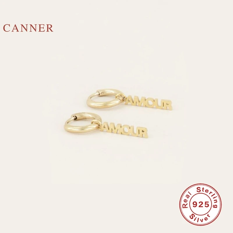 Клипсы для ушей CANNER, модные серьги для пар с алфавитом, серьги из стерлингового серебра 925 пробы, ювелирные изделия, серьги для женщин, Brincos Aretes De Mujer
