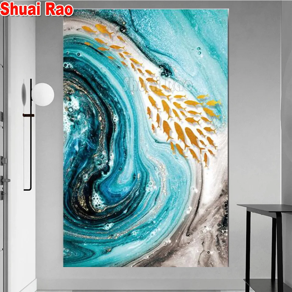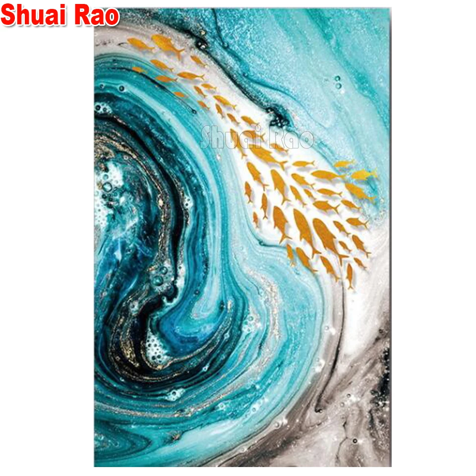 Абстрактная синяя Золотая рыбка 5d diy Алмазная картина полностью квадратная круглая дрель Алмазная вышивка мозаика Вышивка крестом зыбучий песок 5d искусство
