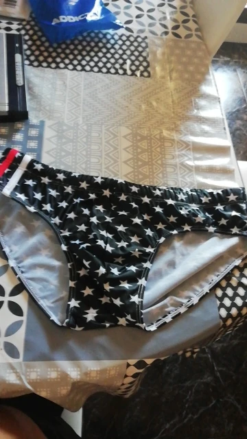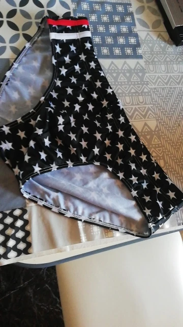 Продукт занял много времени, к моему удивлению, размер не слишком велик для того, что я ожидал, также качество ткани оставляет желать лучшего, кажется, очень низкого качества и довольно хорошо. Цвет купальника не совсем точный, как показано на рисунке, он темнее и едва имеет боковую Красную Полосу.