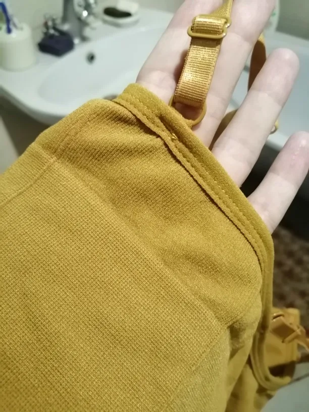 Все хорошо, размер подошёл, приподнимает грудь. Очень здорово, что нет косточек, потому что они оставляют следы. Плотный. Подойдёт и для занятий спортом. По качеству вроде норм, надеюсь после стирки не испортится