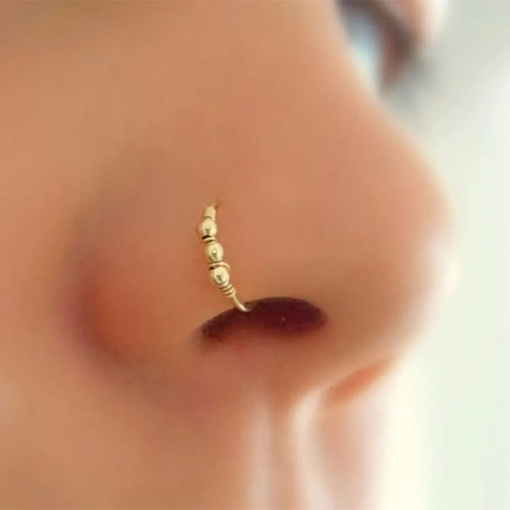 3 шт.компл., модные ретро круглые бусины, кольцо для носа золотого ...