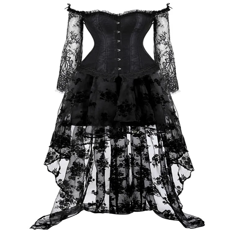 Викторианский корсет, топ, бюстье, женское белье с длинными рукавам...
