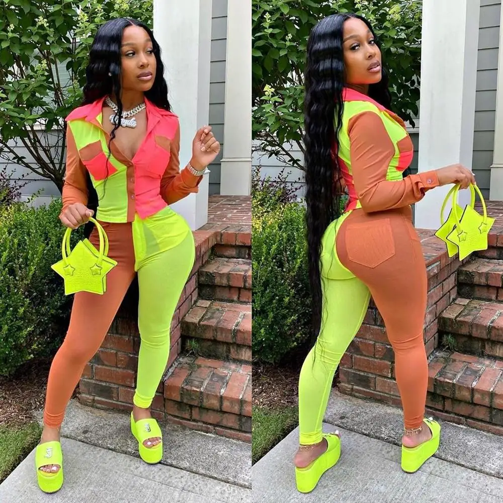 Женский спортивный костюм из двух предметов, повседневная цветная Лоскутная Блузка, топ и длинные спортивные штаны, спортивный костюм для фитнеса и улицы