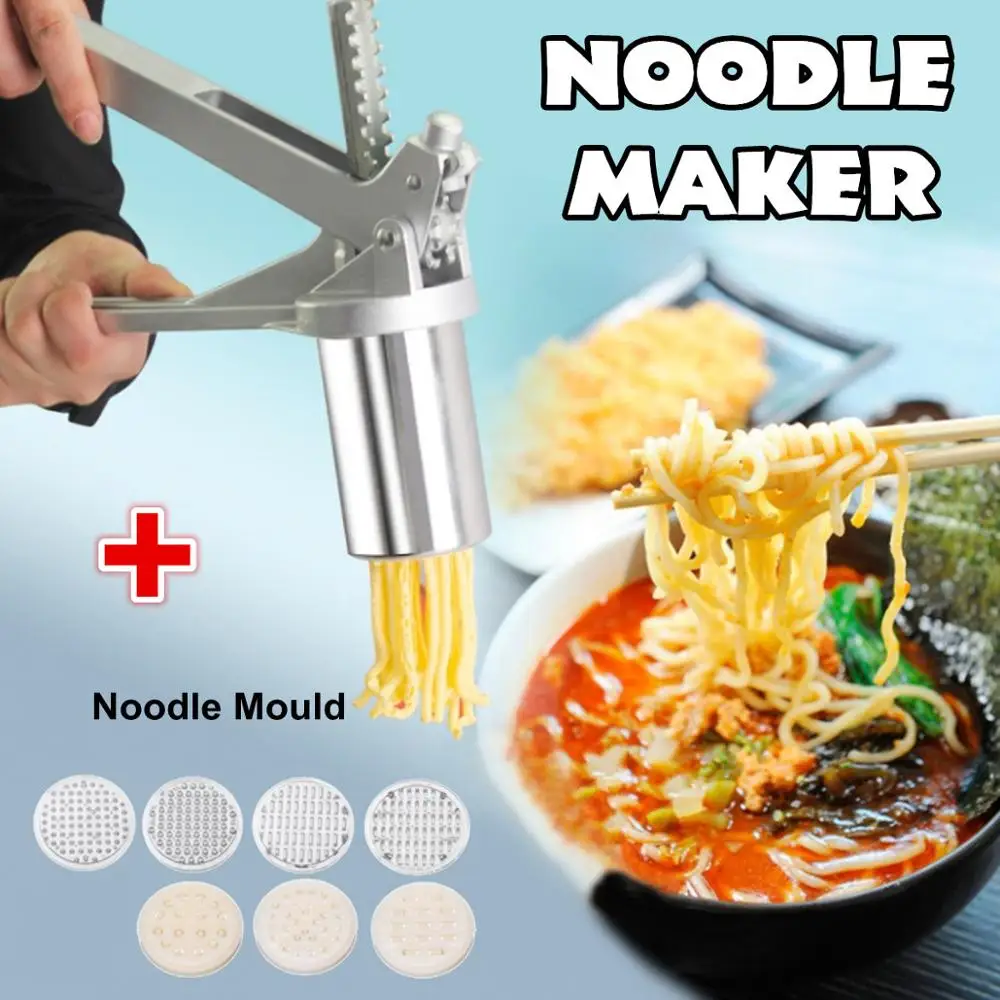 Ручная машина для приготовления лапши из нержавеющей стали, пресс для макарон, рукоятка, кухонная посуда для макарон с 7 прессами, формы для изготовления лапши
