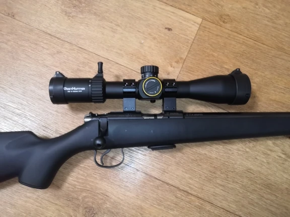 Прицеп просто бомба!! Переживал, что на малой кратности сетку видно не будет, но нет, её видно отлично!! выбрал высокие кольца 20 мм на ласточку для CZ-455, боялся что на низких ручка затвора упираться будет, а зря, шлишком высоко получилось, на фото видно.