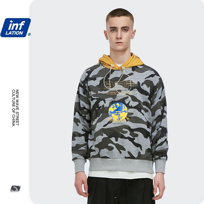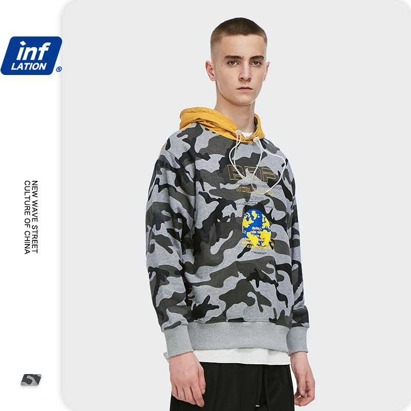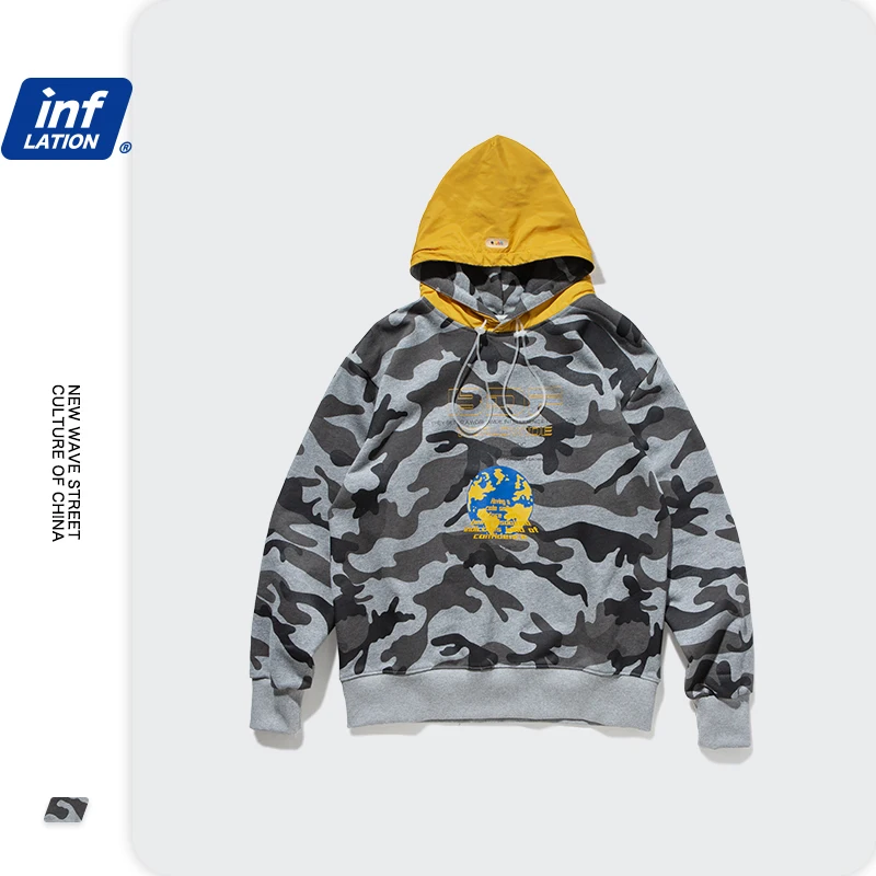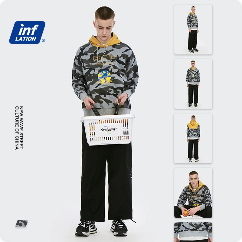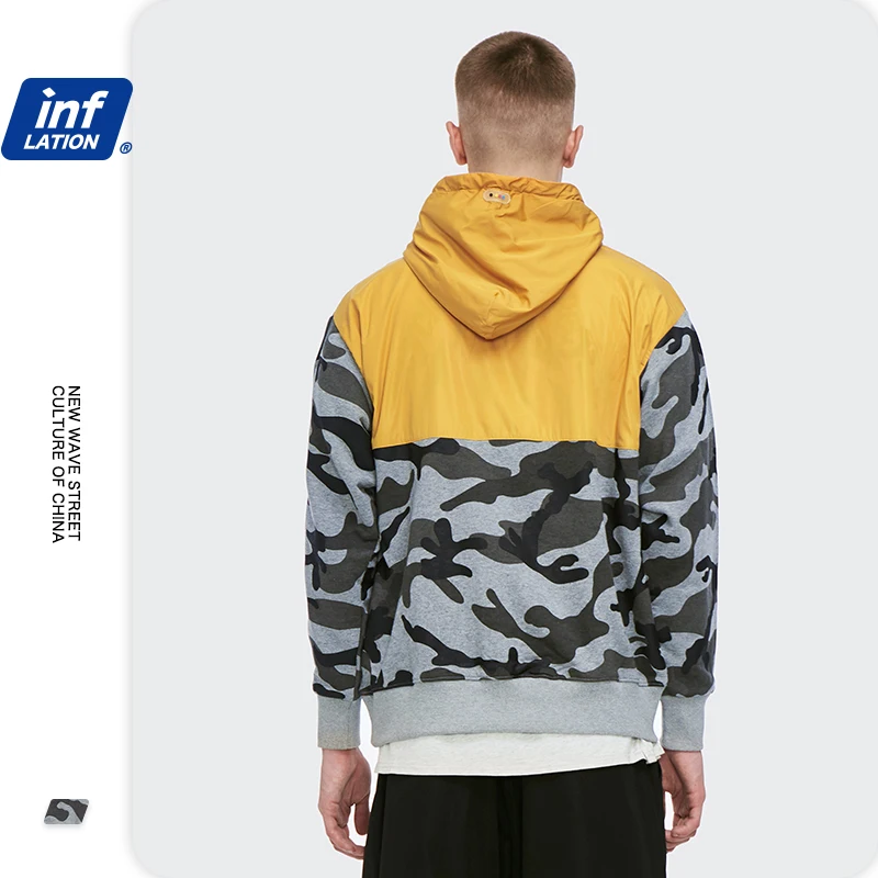 INFLATION 2021 Новые камуфляжные мужские толстовки уличная мода Лоскутные толстовки с капюшоном Мужские 100% хлопковые камуфляжные толстовки 9685W
