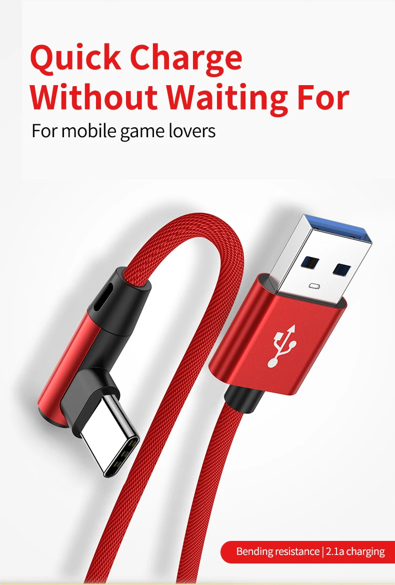 Кабель USB Type-C с углом 90 градусов для Xiaomi Redmi Note 9s 8 Pro QC 3,0, кабель USB C для быстрой зарядки Samsung S20 S9, кабель Type-C