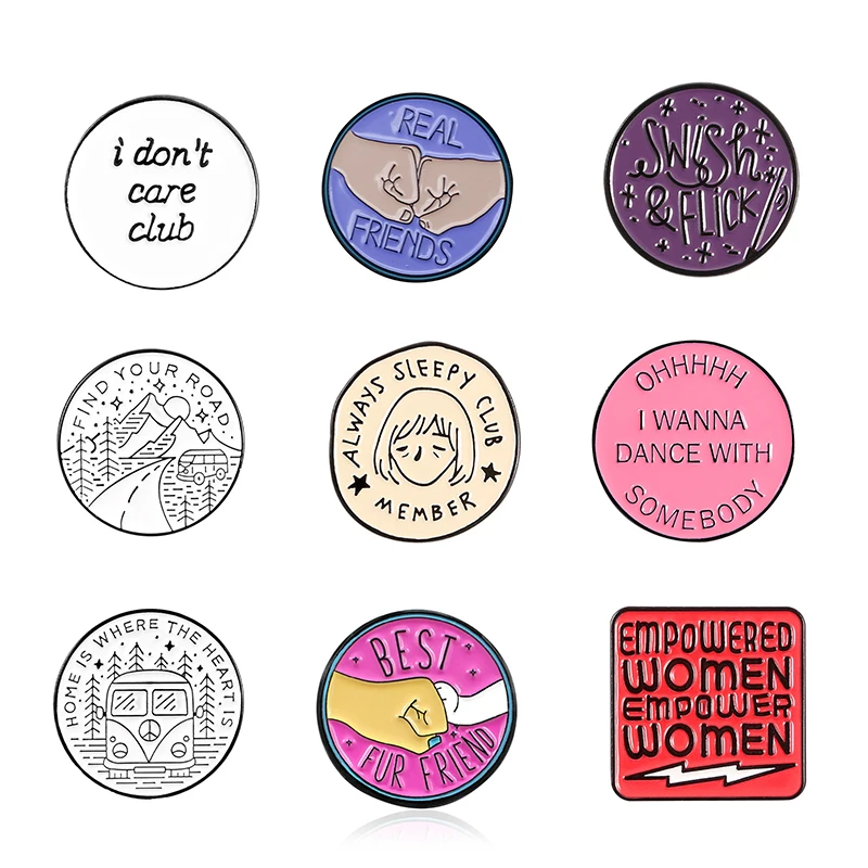Булавки, Круглый квадратный значок, эмалированная розовая фиолетовая красная брошь, лучший друг, женский, для путешествий, кемпинга, сна, клуба, 10 стилей
