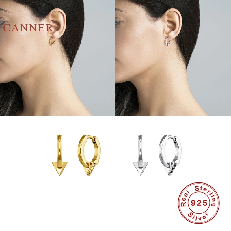 Женские серьги в виде треугольника CANNER, серьги из стерлингового серебра 925 пробы с черным бриллиантом, корейские серьги