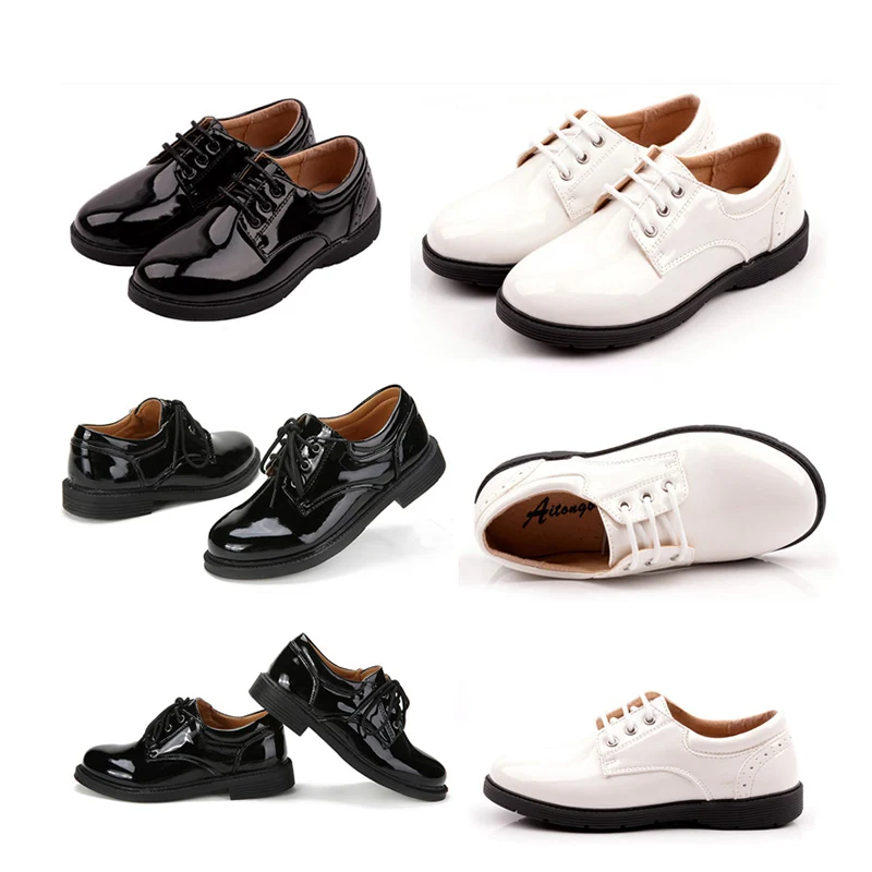 Детские кожаные туфли с цветами для мальчиков, парадные туфли для танцев на сцене, вечерние свадебные туфли для больших мальчиков 6, 8, 10, 14, 16, 18 лет, черные