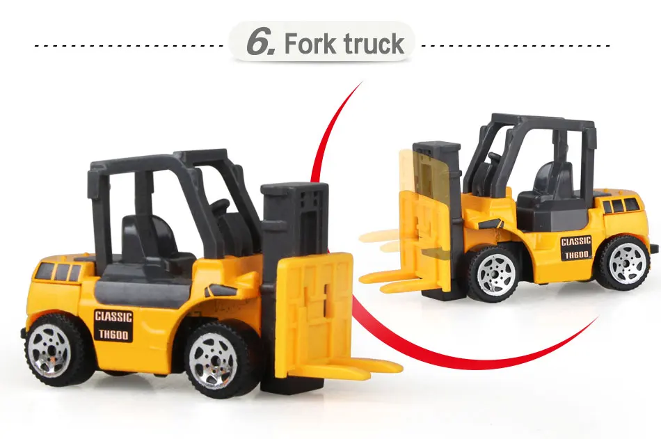 Мини-модель автомобиля из сплава под давлением, 6 моделей, инженерная игрушечная техника, самосвал, вилочный погрузчик, экскаватор, модель автомобиля, мини-подарок для детей, мальчиков