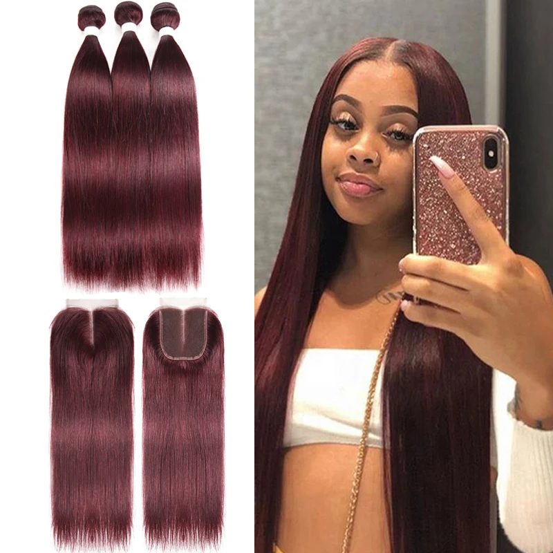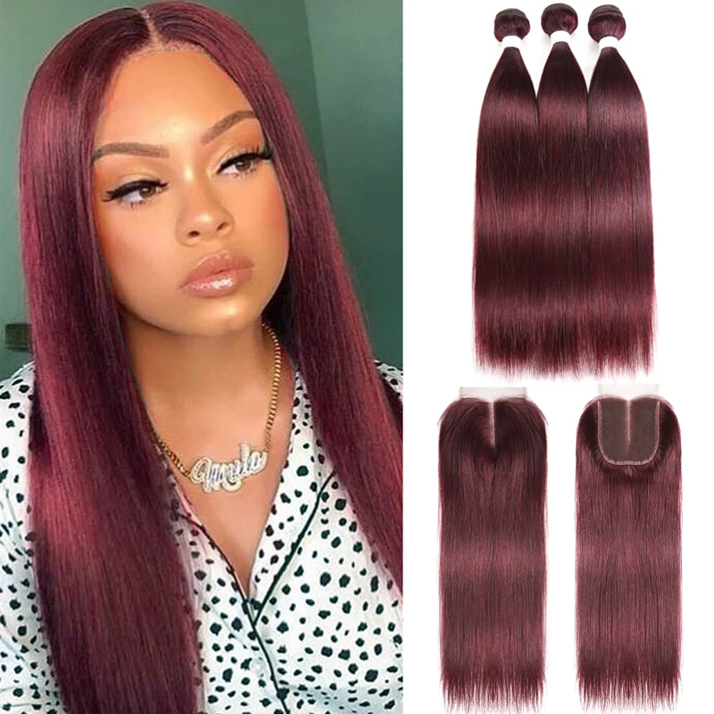 Пряди волос с застежкой, 4x4, 99Jбордовые, красные, бразильские прямые, цветные, натуральные кудрявые пучки волос