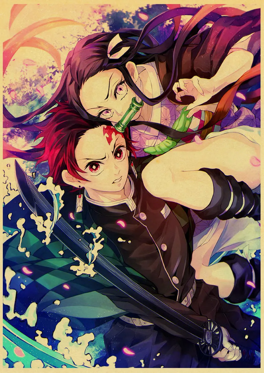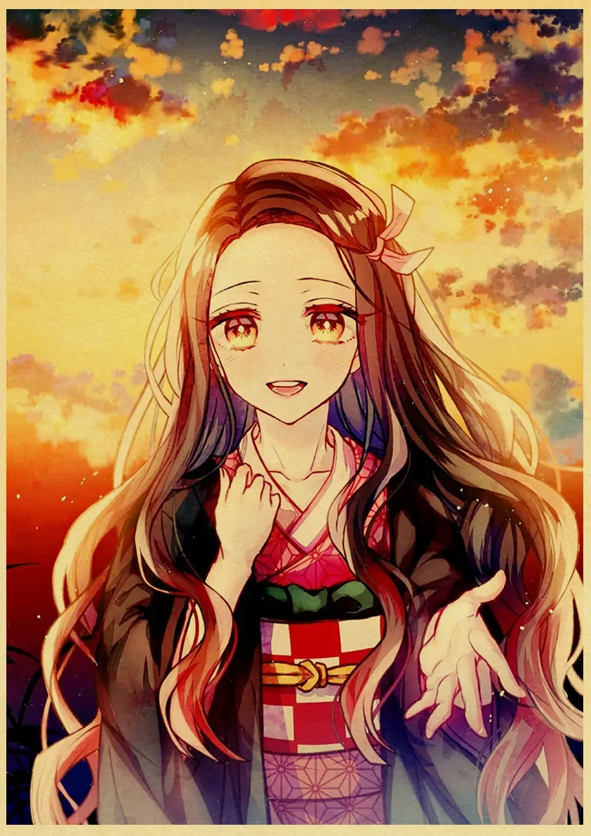 Аниме постер киметсу но айба танджиро незуко, крафт-бумага, ретро п...