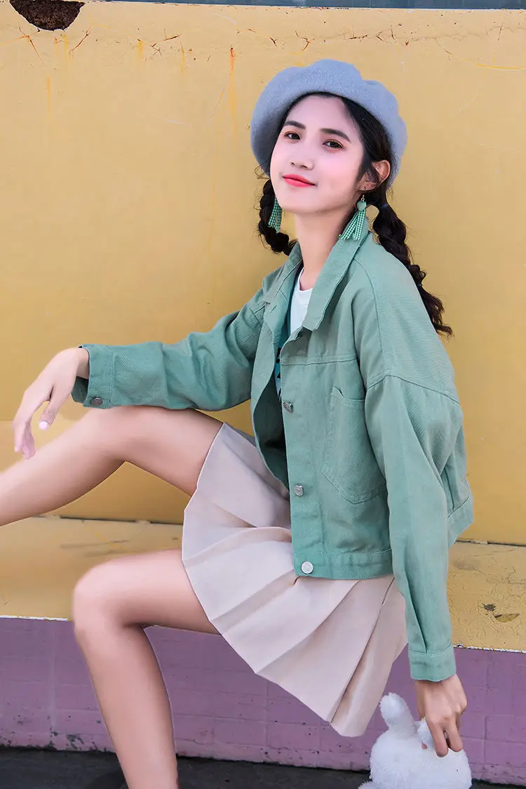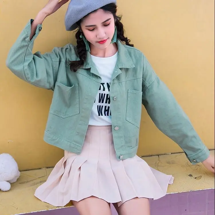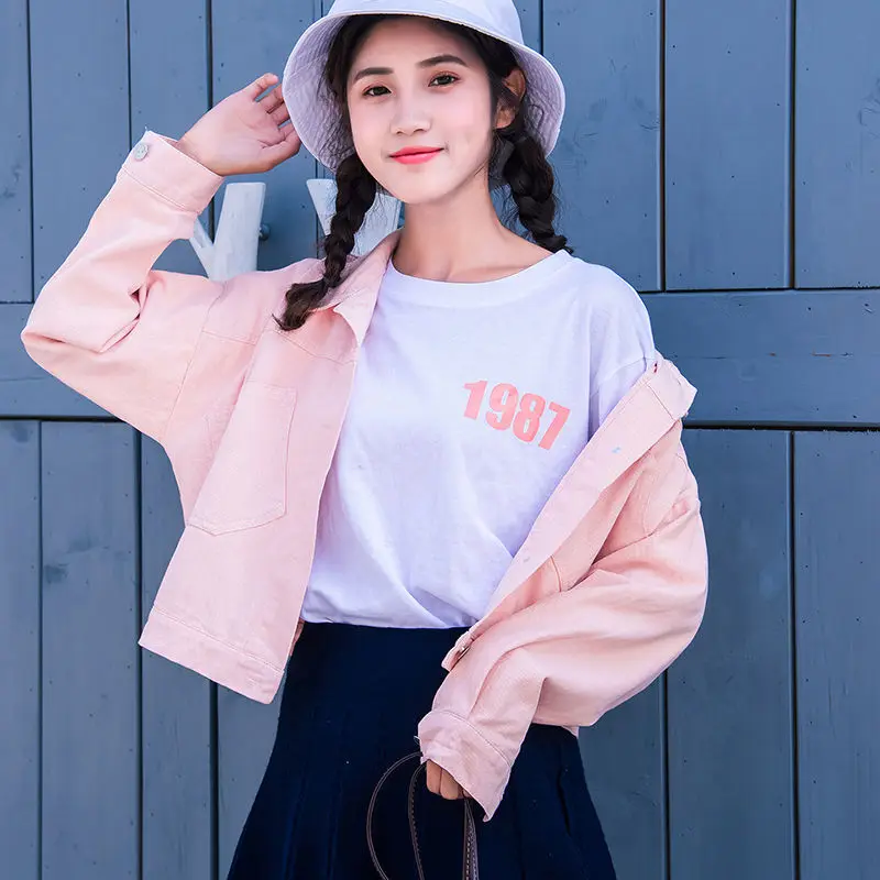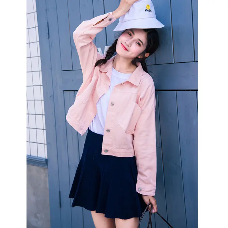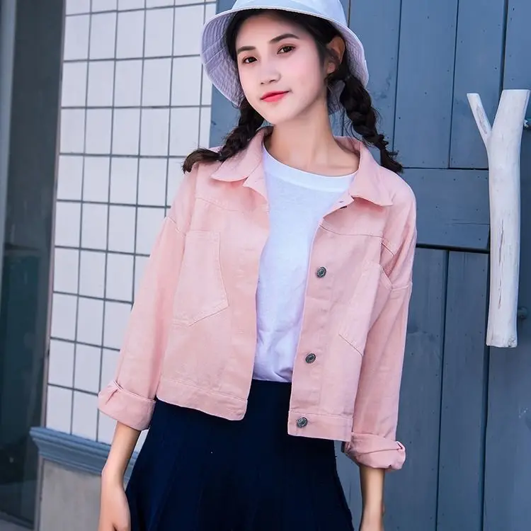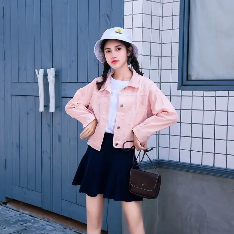 Куртка джинсовая женская однобортная, Розовый Пиджак из денима в стиле бойфренда с лацканами, Повседневная Уличная одежда, J206, 2020