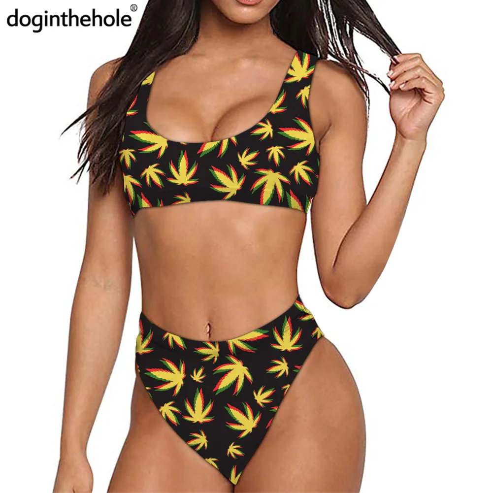 Doginthehole, женский модный купальник с рисунком сорняков в стиле ...