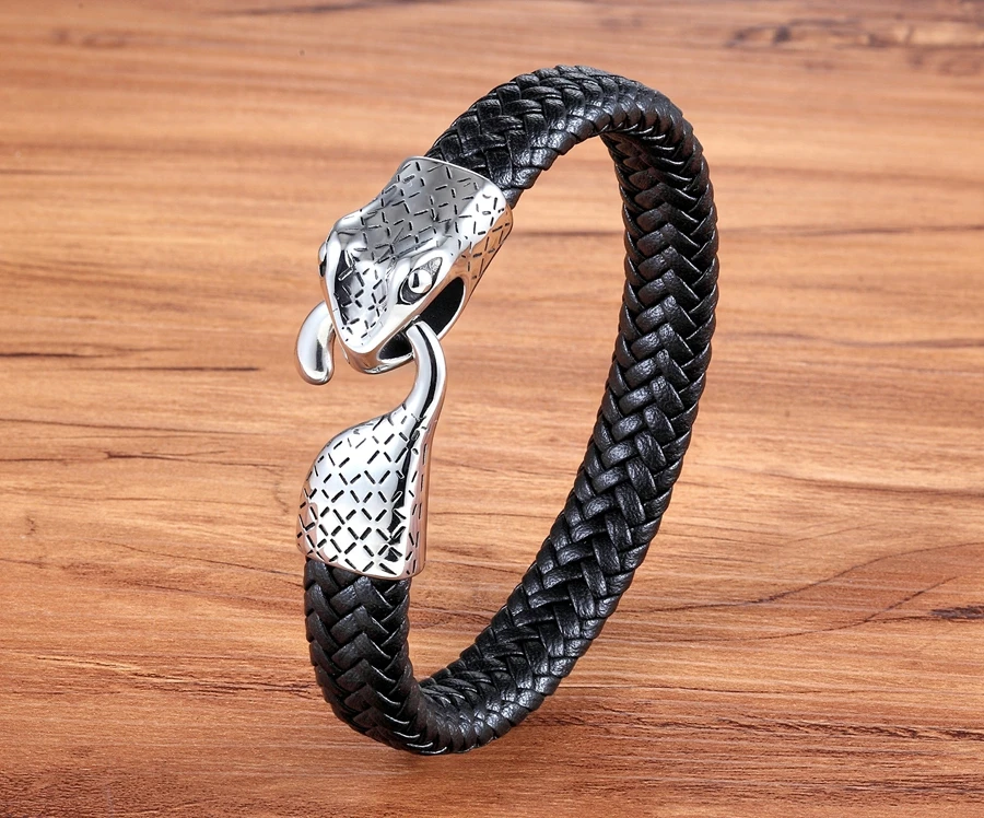 Браслет XQNI из натуральной кожи, мужской браслет с головой змеи, а...