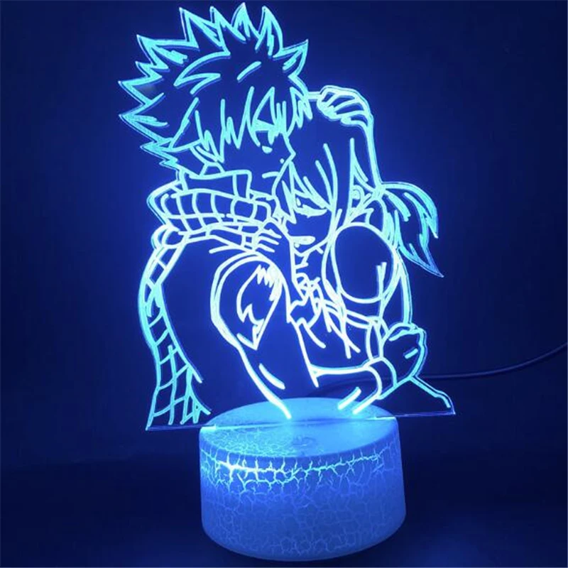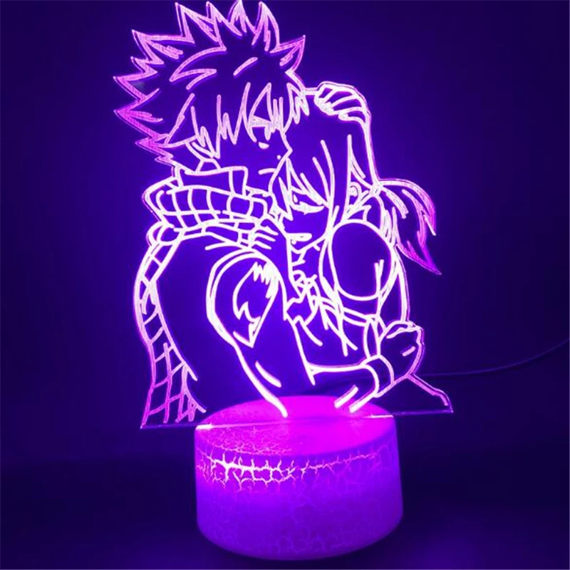 Аниме Сказочный хвост 3D визусветильник свет светодиодный ночсветильник Natsu Dragneel и Erza Scarlet Touch Иллюзия настольная лампа светильник украшения дома