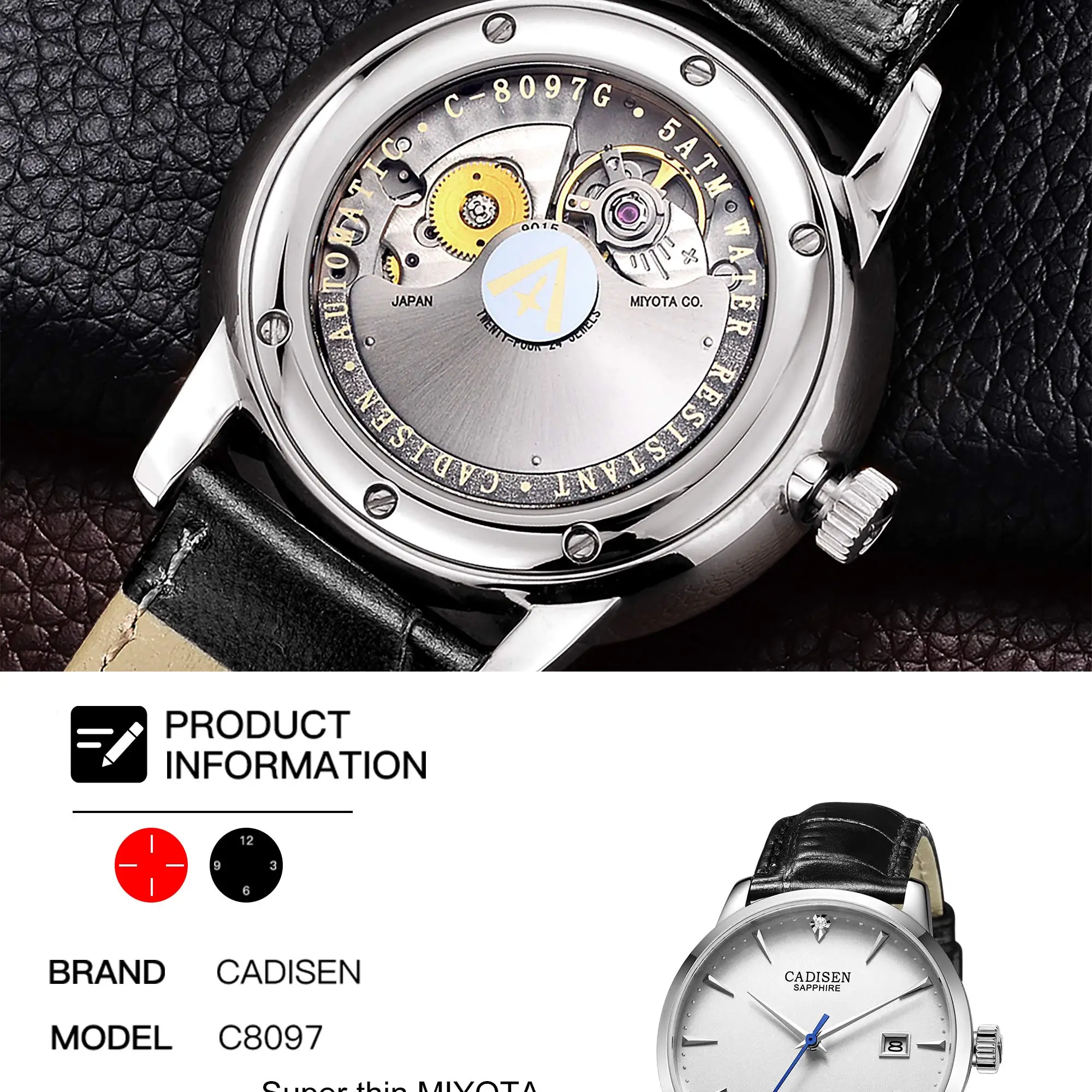 Часы наручные CADISEN Мужские автоматические, деловые водонепроницаемые механические брендовые, из нержавеющей стали, подарок для мужчин, C8097M