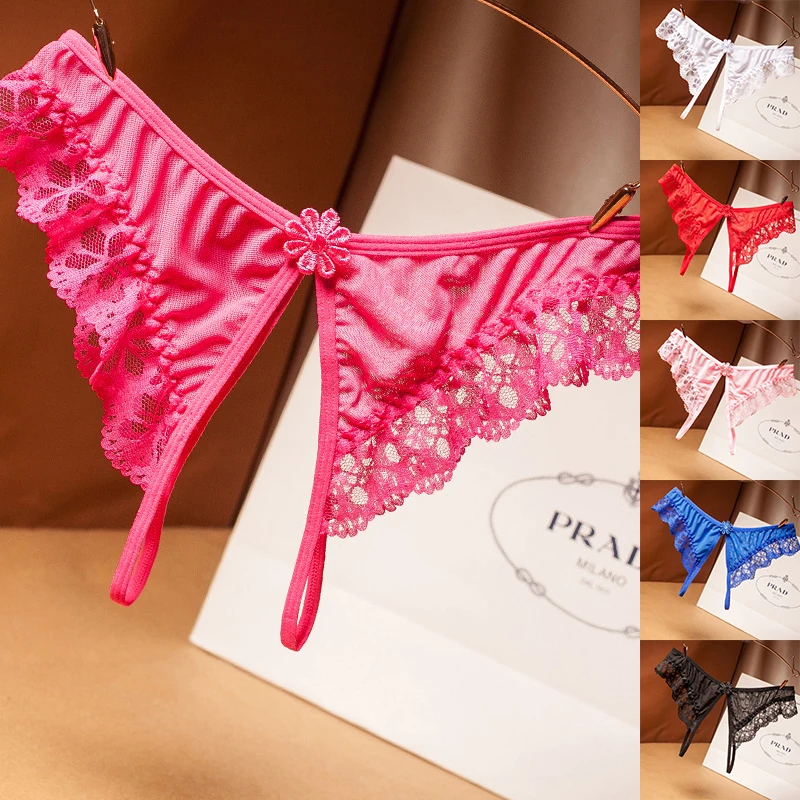 Женские кружевные стринги с открытой промежностью, трусики-стринги, сексуальное нижнее белье
