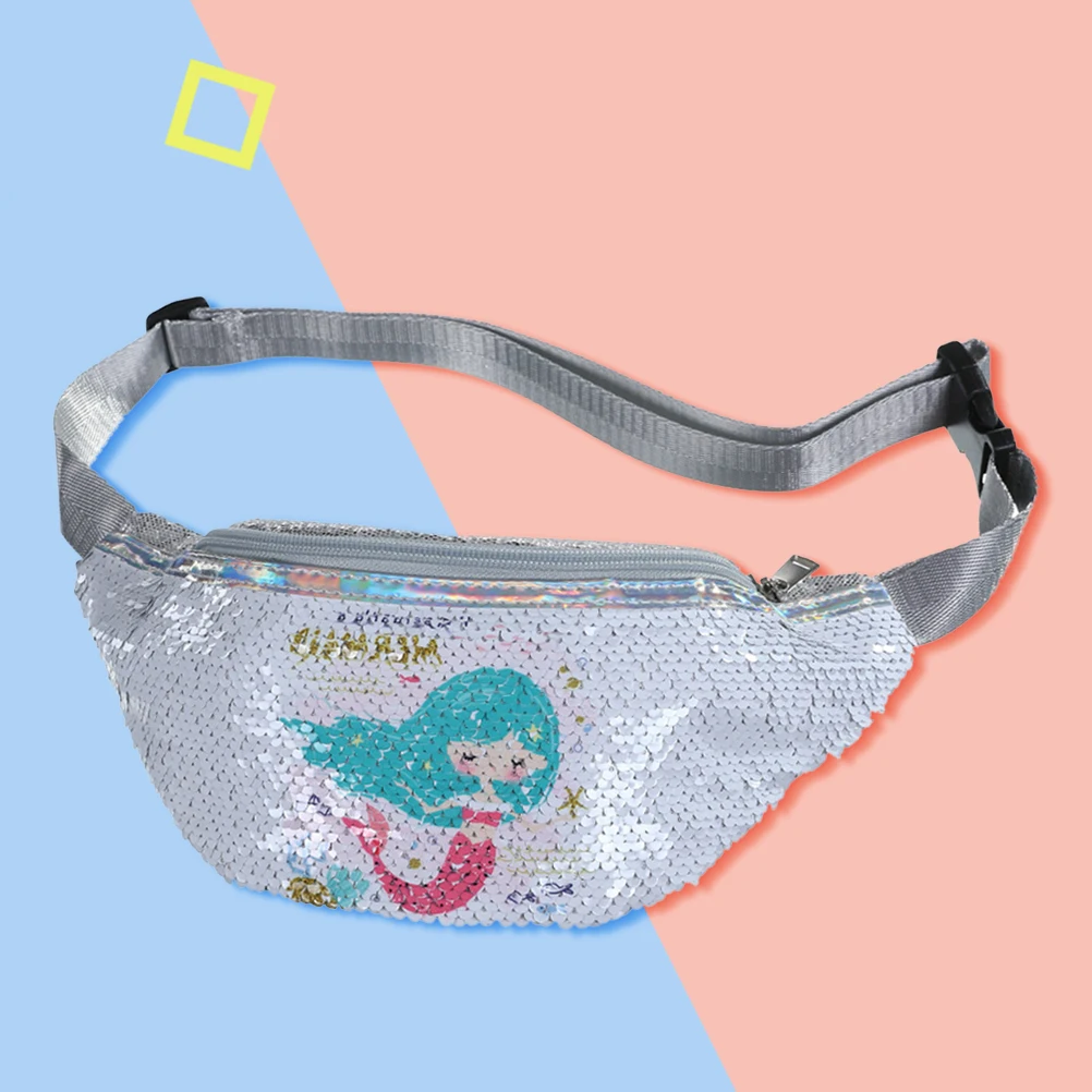 Повседневная Регулируемая поясная сумка с мультяшным единорогом и блестками, забавная сумка, детские сумки на ремне через плечо, Детская сумка для телефона
