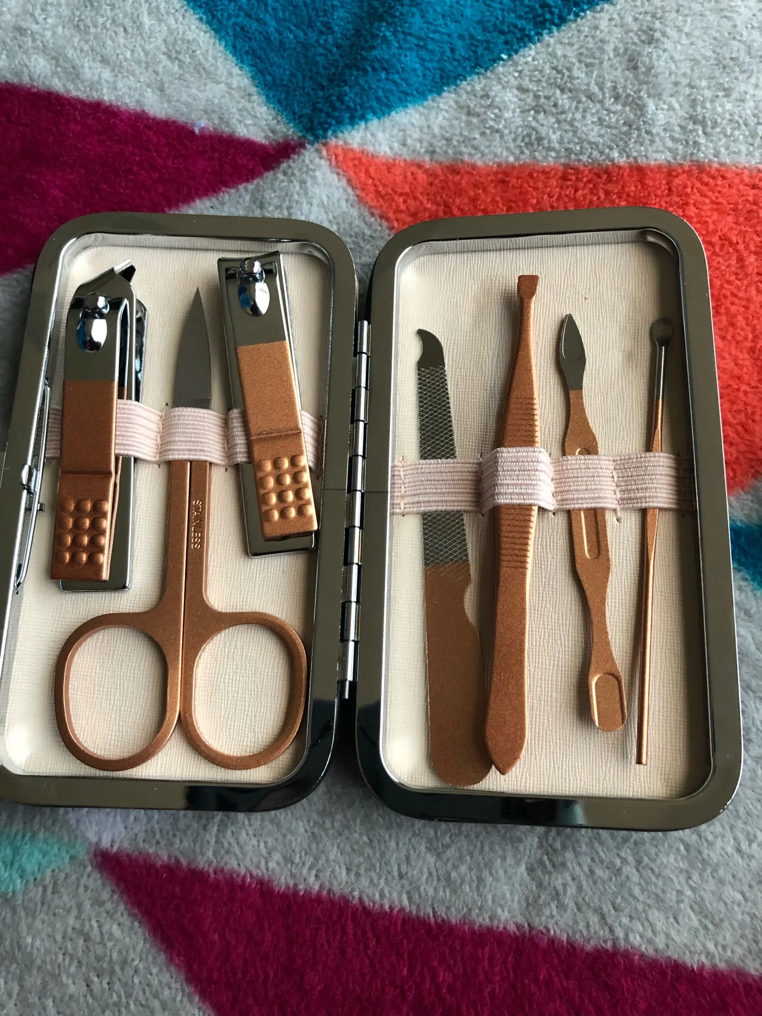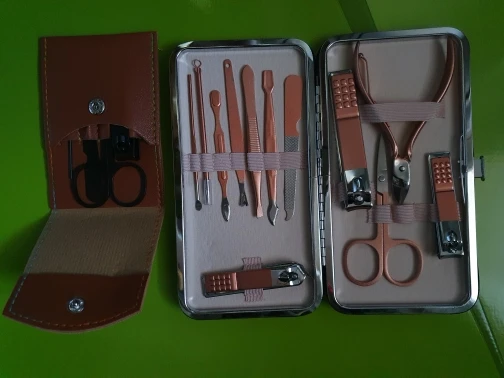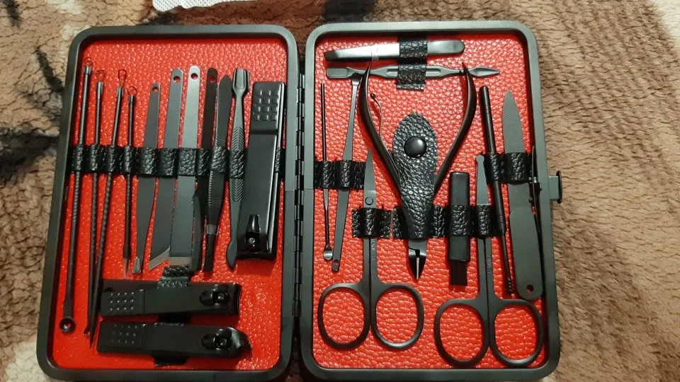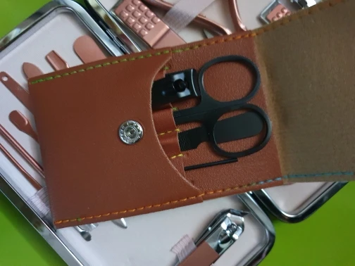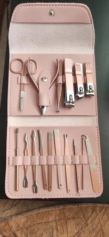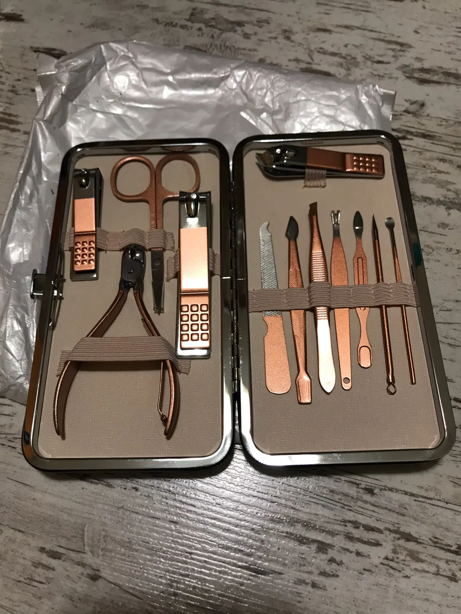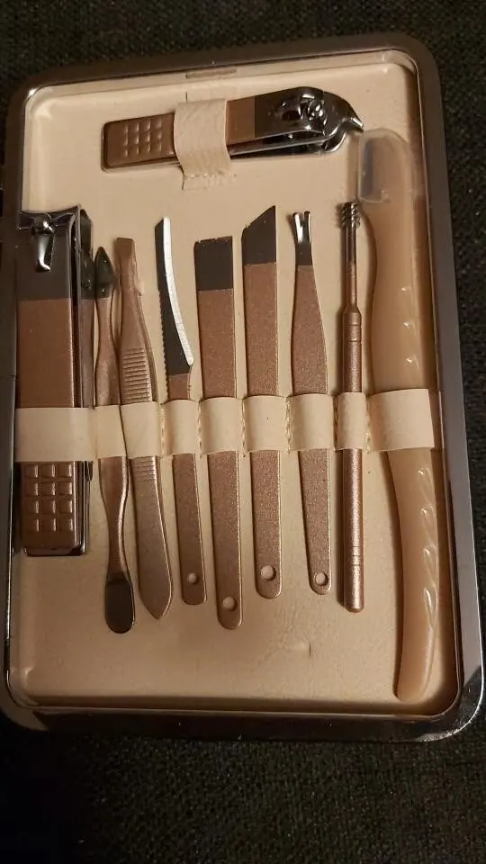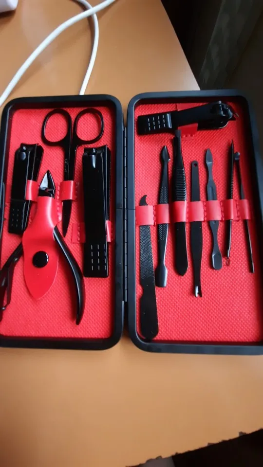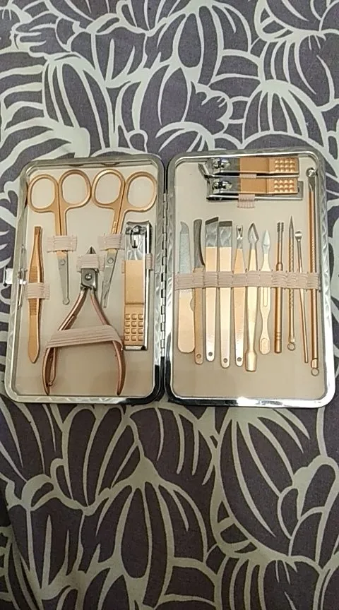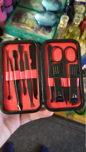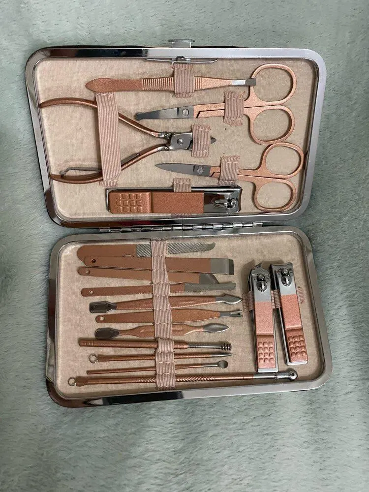 Очень ждала этот набор, слегка разочаровалась (до этого был простой от орифлейма - много лет служил без нареканий). Из плюсов - хорошая коробочка, Кусачки, резаки, всякие штуки для ушей, качество покраски изделий . Из минусов - от пилочки понятно можно было ничего не ждать, пара лопаток совсем игрушечные, не как на фото. Ножницы были как будто с разных собраны - одно лезвие прямое, другое с загибом. И краска местами заходит на рабочую поверхность . Так же не понравилось как пришиты резинки на футляре - думаю быстро распушатся. За нюансы продавец сделал скидку, за что спасибо. Доукомплектовала некоторые предметы своими и в целом довольна.
